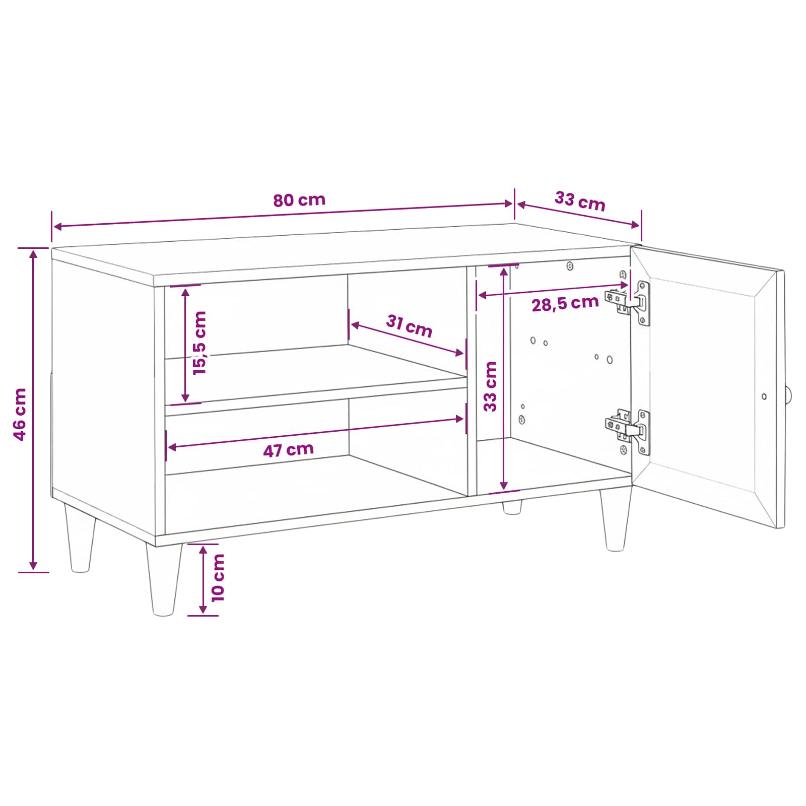 - Splošne dimenzije: 80 x 33 x 46 cm (D x Š x V)