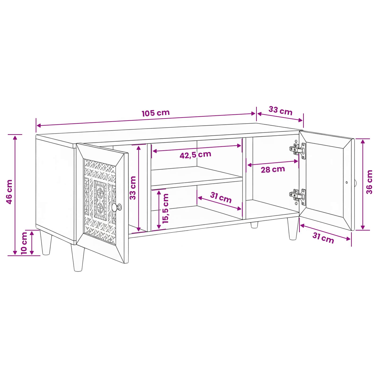 - Splošne dimenzije: 105 x 33 x 46 cm (D x Š x V)