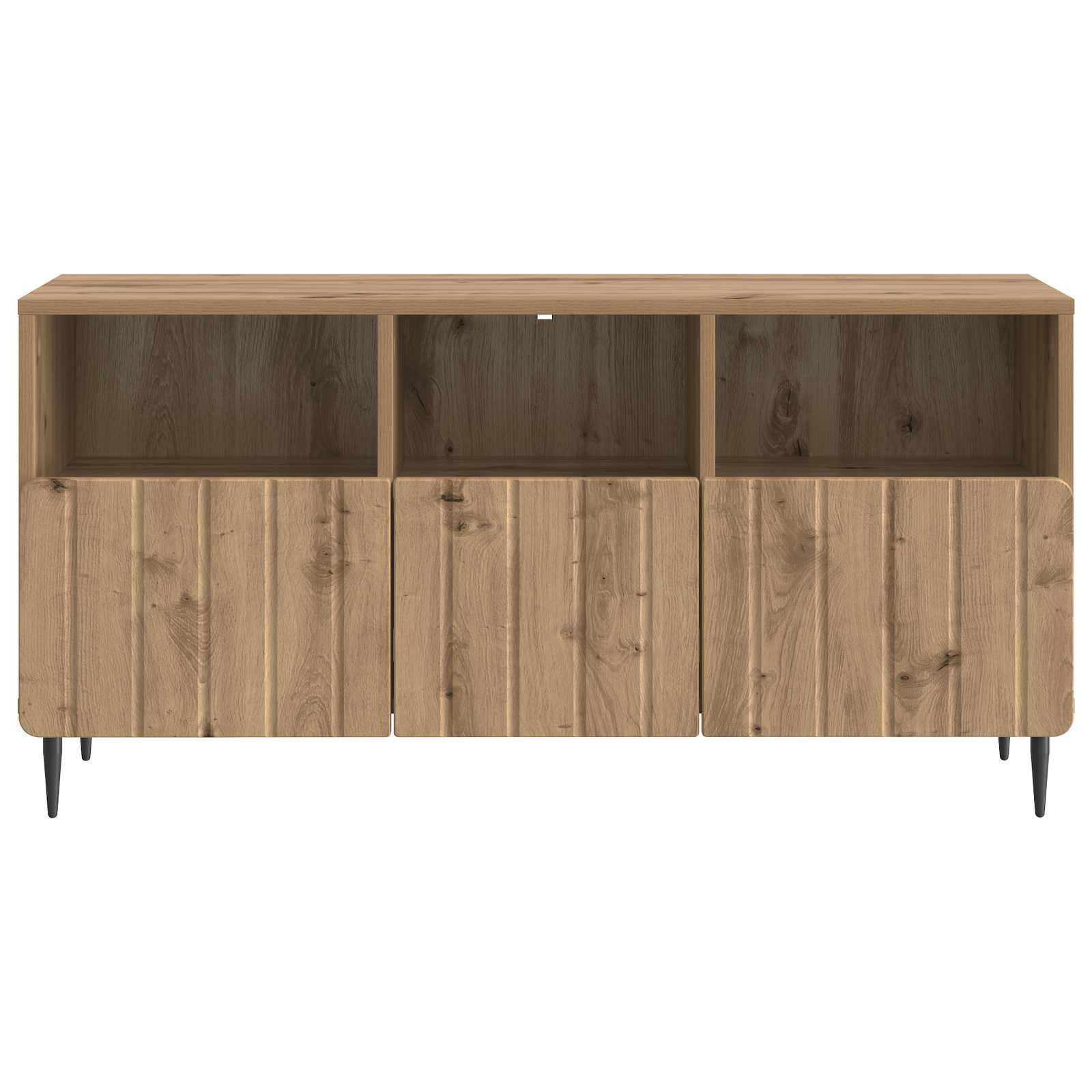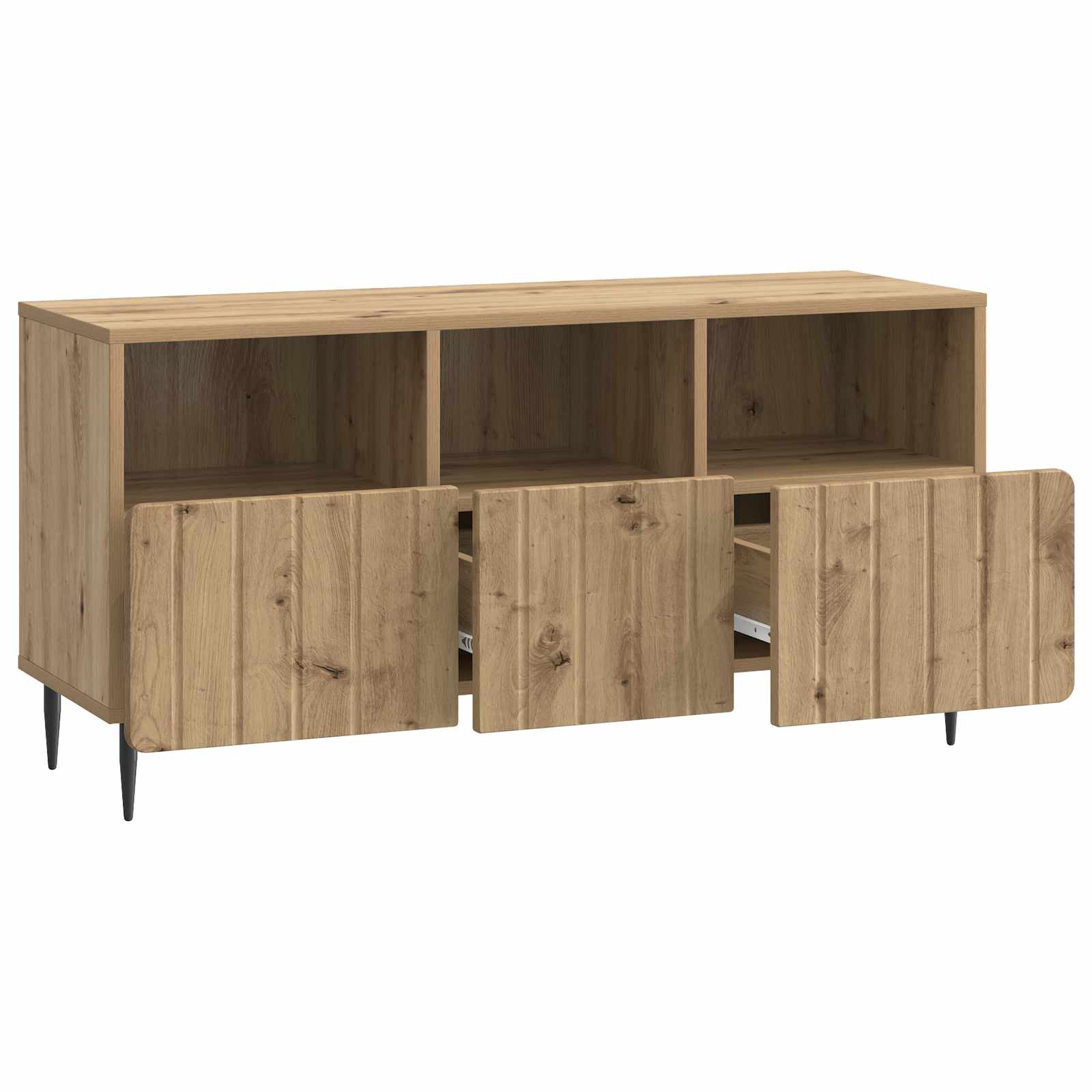 Ta moderna TV omara združuje elegantni videz s funkcionalnostjo. Zasnovana je za sodobne prostore, je stilski kos, ki je prava zvezda vsakega prostora. Predstavljajte si prostor, kjer je vaš televizor na osrednjem mestu, obdan z to elegantno omaro. Njena vsestranskost ji omogoča prilagoditev različnim nastavitvam in potrebam. Materiali: Omara, narejena iz inženirskega lesa, zagotavlja trpežnost in gladko površino, kar ne le dopolnjuje moderno estetiko, temveč zagotavlja tudi dolgo življenjsko dobo pohištva. Vključene komponente: Ima predale s kolutnimi drsniki, ki omogočajo enostavno dostopnost do shranjenih stvari. Močne jeklene noge ji dajejo dvignjeno strukturo in dobro podporo. Lastnosti / funkcionalnost / dizajn: Z obilico prostora za shranjevanje je omara perfektna za shranjevanje vseh vrst elektronike in drugih dodatkov. Čiste linije in minimalna okrasitev jo naredijo za super izbiro in združujejo estetiko z uporabnostjo. Priporočena uporaba: Popolnoma se prilega dnevnim sobam s svojo elegantno silhueto. Ne glede na to, ali shranjujeta medije, knjige ali dekorativne predmete, ohranja red in brezskrbno okolje. Vzdrževanje: Ohranite videz omare tako, da jo obrišete z vlažno krpo ter sestavljanje zahteva dve osebi in običajna orodja, kot so izvijači, kar zagotavlja stabilnost in kakovostno montažo.