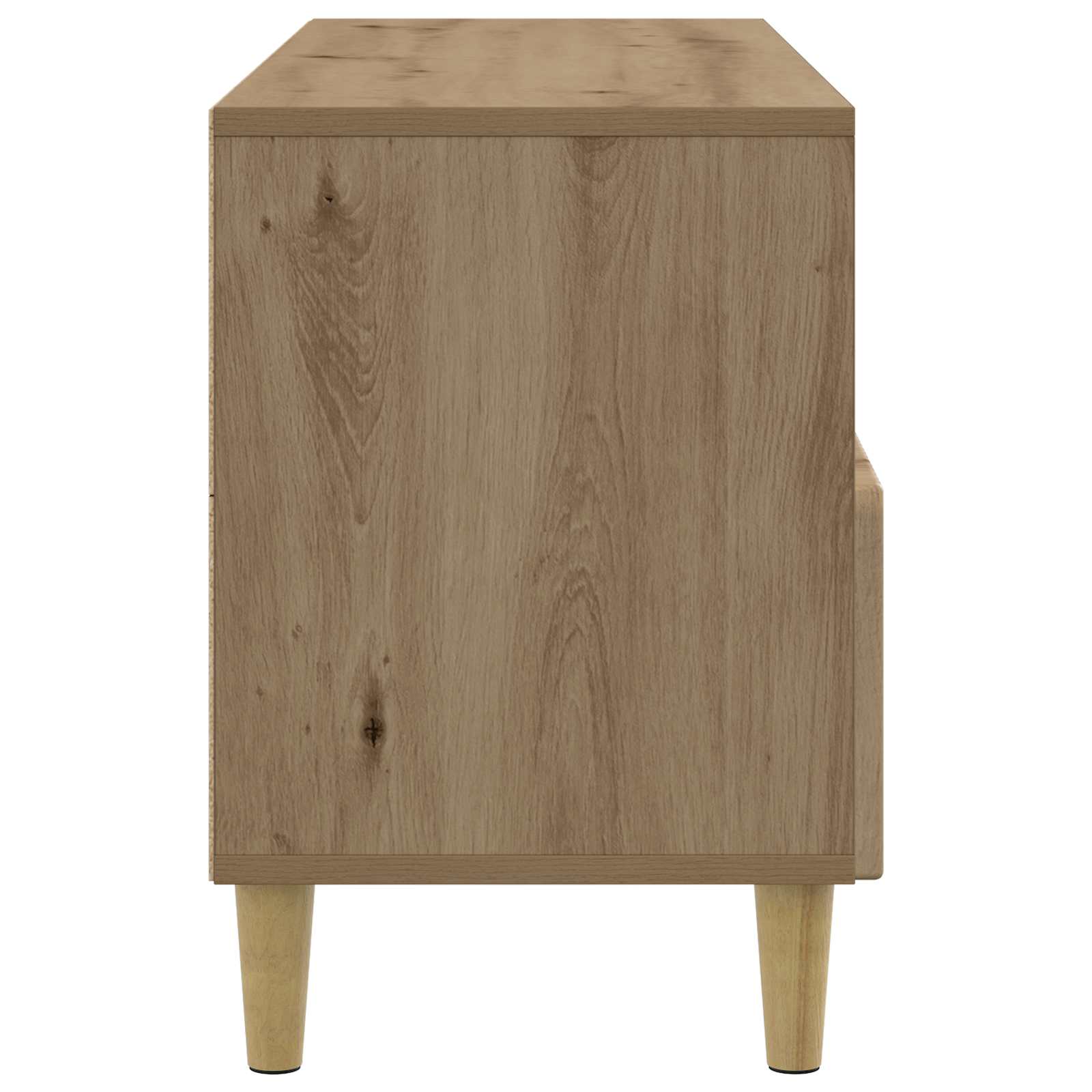 Ta moderna TV omara združuje vintage šarm in sodobno funkcionalnost, kar jo naredi idealno za vsak dnevni prostor. Njena pravokotna oblika prinaša vizualno privlačnost, saj omogoča uravnotežen prikaz medijske opreme ali dekorativnih predmetov, hkrati pa se lepo ujema z različnimi notranjimi slogi. Struktura iz inženirskega lesa Nizek šalter je izdelan iz inženirskega lesa, znanega po trdnosti in trajanju. Ta material povečuje vzdržljivost omare, ne da bi žrtvoval eleganco in dolgotrajnost v aktivnih gospodinjstvih. Obilo prostora za shranjevanje Omara nudi širok prostor za shranjevanje, primeren za medijske naprave, knjige in še več. Hiter dostop do shranjenih stvari krije organiziran prostor, ki nudi mirno okolje za sprostitev. Rjave zožene noge Njen nizki profil podpirajo zožene noge iz inženirskega lesa s toplo rjavo obdelavo. Te noge prinašajo stabilnost in eleganco, kar dobro dopolnjuje različne okrasne teme ter dviga estetiko prostora. Vsestranska funkcionalnost Omara je zasnovana za prilagodljivost, tako da služi različnim namenom, poleg shranjevanja medijev. Ne glede na to, ali jo postavite v dnevno sobo ali pisarno, njena fleksibilnost jo naredi nujno potrebno v vsakem domu. Navodila za nego Ohranite omaro v dobrem stanju s preprostim brisanjem z vlažno krpo, da odstranite prah in madeže. Enostaven postopek nege zagotavlja, da bo omara ostala lepa in delujoča skozi leta.