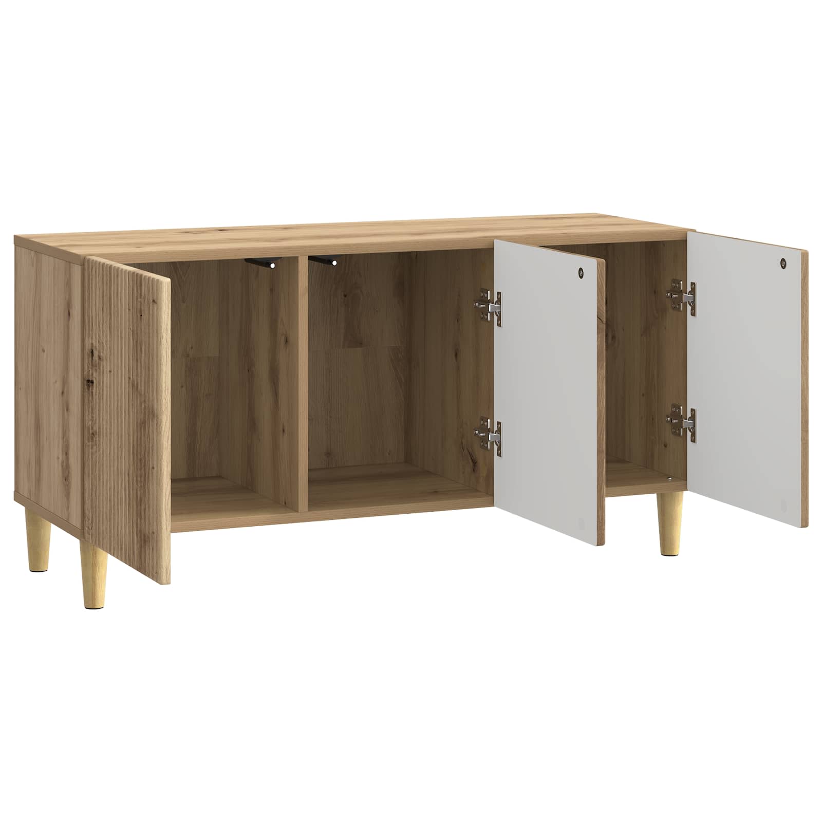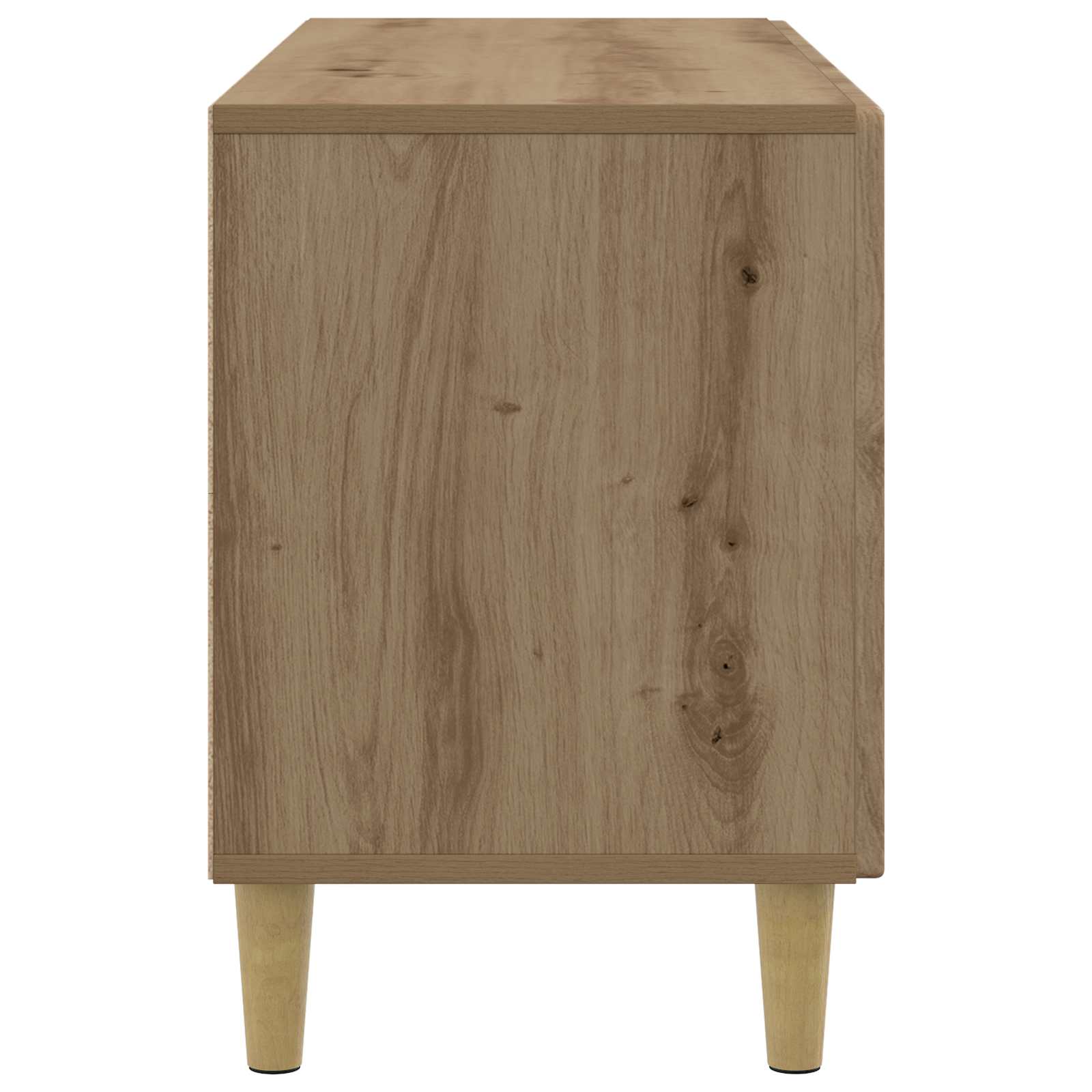 Moden TV kabinet je enostavna rešitev za shranjevanje, ki je perfecta za tvojo dnevno sobo. Vintage izgled ga naredi še bolj atraktivnega s pravokotno obliko in inženirskim lesom. Njegova prilagodljivost omogoča, da ga postaviš, kamor želiš, ali da shraniš svoj TV ali zbirko. Minimalističen videz, zožene noge in rjava barva dodajo subtilno eleganco, ki se prilega vsakemu interierju. V notranjosti so pregrade, ki nudijo dovolj prostora za tvoje elektronike ali osebne stvari, vse skupaj pa se lepo sklada v vsakdanje življenje. Gradnja iz inženirskega lesa Kabinet je narejen iz inženirskega lesa, kar mu daje robustno in stabilno strukturo. Površina iz inženirskega lesa dobro podpira različne medijske naprave ali dekoracije, kar zagotavlja dolgotrajnost in zanesljivost skozi čas. Ta izbira materialov ne le da je funkcionalna, ampak tudi estetsko privlačna za vsak prostor. Funkcionalna zasnova Nizkoprofilna zasnova povezuje shranjevanje in stil. Pravilna oblika ga naredi idealnega za vsako steno, kjer lahko lepo prikažeš ali shraniš stvar. Njegova vsestranska struktura se prilagaja vsaki občasni rabi ali posebnih priložnostih. Kapacitete shranjevanja Kabinet daje dovolj prostora z različnimi pregradami za elektroniko, knjige ali drobnarije, kar pomaga ohranjati mero videti. Prostor znotraj naredi tvojo dnevno sobo bolj urejeno in elegantno. Slog zoženih nog Zožene noge iz inženirskega lesa prinašajo eleganten in sodoben izgled ter hkrati ponujajo stabilnost. Oblika noge, ki se zožuje, zagotavlja, da kabinet ostane trden in funcionalen, kar doprinese k njegovi sofisticirani podobi. Sestavljanje in nega Sestavljanje bo zahtevalo dva ljudi, ki bosta uporabljala izvijač in ključ, da bo vse pravilno nastavljeno. Nega je preprosta – samo z vlažno krpo obrišeš, kar ohrani njegov sijaj še mesece po nakupu.