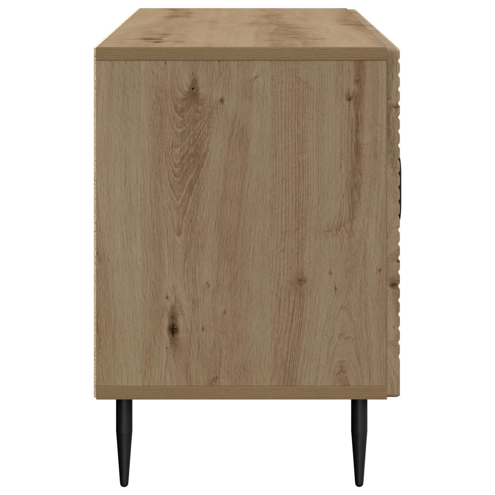 Ta nizka TV omara brez težav povezuje vintage stil s sodobno funkcionalnostjo, kar prinaša eleganten način shranjevanja v vaš bivalni prostor. S svojo pravokotno obliko je omara tako stilska kot organizacijska rešitev. Predstavljajte si, kako dviguje vaše zabavne naprave in dosega popolno ravnotežje med lepoto in uporabnostjo. Gradnja iz inženirskega lesa: Ta omara je narejena iz inženirskega lesa, kar zagotavlja tako lepoto kot trajnost. Njena površina se ne upogne, kar pomeni, da bo dolgo izgledala dobro. Kakovostna struktura daje uporabnikom zaupanje v njeno dolgoživost. Zožene noge: Naše zožene črne kovinske noge dodajo eleganco in stabilnost. Zlahka se skladajo z različnimi stili ter omaro dvigajo za lažje čiščenje. Te noge povezujejo lepoto in funkcionalnost ter dajejo občutek več prostornosti. Pametna konfiguracija shranjevanja: Televizijska omara ima pametno zasnovo z obilico prostora za shranjevanje in večpredmetne predelke. Je odlična rešitev za nered, saj prostor sprejme vse vaše medijske naprave in daljinske upravljalnike, kar naredi vaš prostor videti urejen in organiziran. Prilagodljiva uporaba: Od shranjevanja zabavne opreme do delovanja kot konzola v dnevni sobi, njena večnamenskost se pokaže. Ta prilagodljivi kos se lahko spremeni za različne namene, kar ustreza vašemu življenjskemu slogu, s čimer povezuje funkcionalnost in stil. Minimalno vzdrževanje: Ta omara se izogiba visokemu vzdrževanju – le občasno brisanje z vlažno krpo ohranja njen vrhunski videz. Tako imate več časa za užitek v funkcionalnosti in estetiki omare, manj pa ga porabite za vzdrževanje.