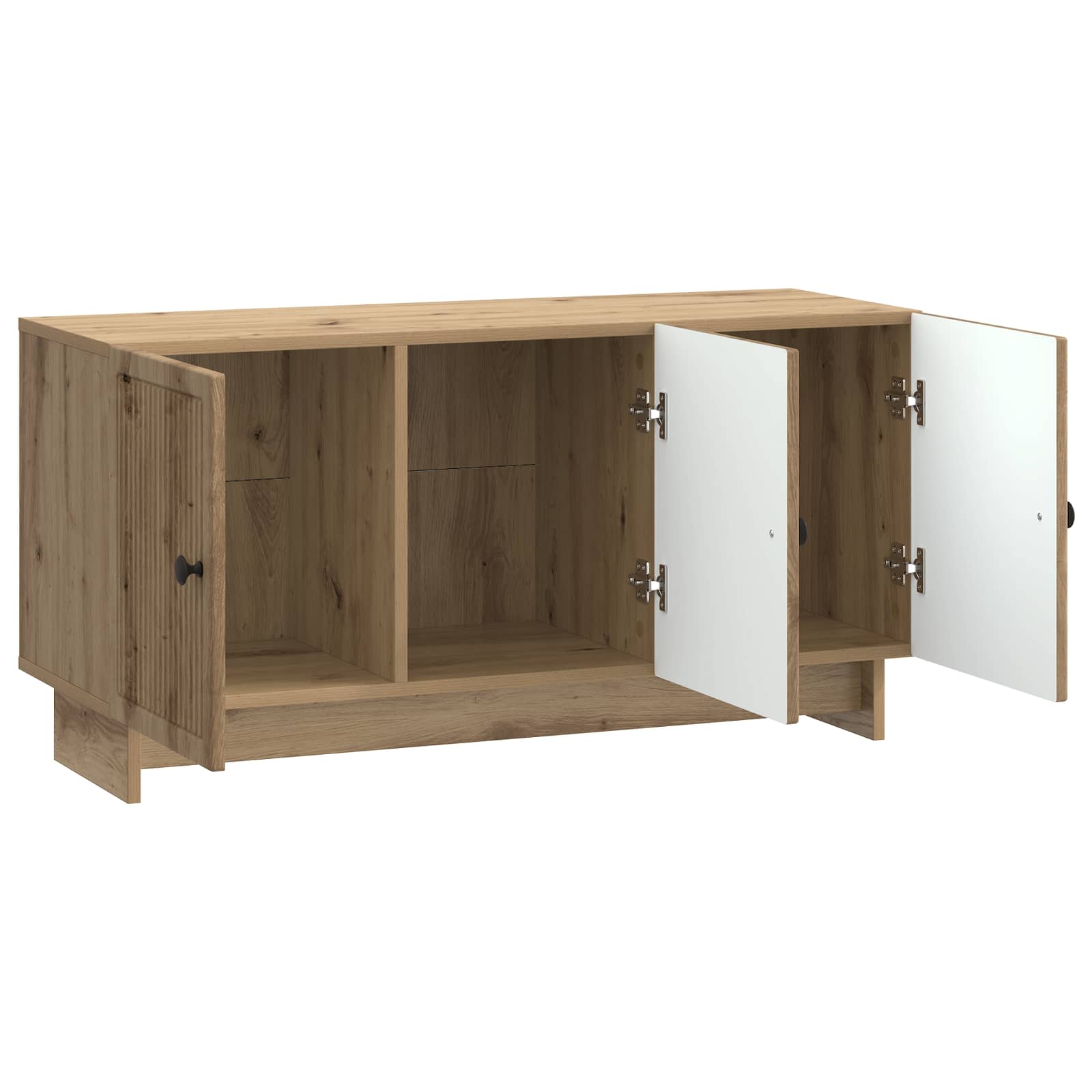 Ta moderna TV omara se brez težav zlije z vsakim sodobnim dizajnom. S svojim pravokotnim videzom ponuja privlačnost in funkcionalnost, kar jo naredi idealno izbiro za dnevne sobe. Njen minimalističen slog in čiste linije so popolni za tiste, ki cenijo enostavno eleganco. Ne glede na to, ali shraniš elektronske naprave ali pokažeš dekorativne predmete, ta omara izboljša vsak prostor in ponuja šik rešitev za sodoben dom. Materiali: Odlična izdelava iz inženirskega lesa, ta omara nudi vzdržljivost in lepe vizualne lastnosti. Inženirski les nudi enotno kakovost in gladko površino, kar je super za tiste, ki iščejo dolgotrajno pohištvo s stilom. Njegova paša dlaht je odporna na vsakdanje obrabe. Vključene komponente: Omara ponuja uporabne police, ki nudijo dovolj prostora za shranjevanje elektronskih naprav ali drugih predmetov. Vrata z 90° tečaji omogočajo priročen dostop, ročaji pa zagotavljajo dober oprijem. Te komponente skupaj nudijo praktično rešitev za shranjevanje v vsakem prostoru. Lastnosti / Funkcionalnost / Oblikovanje: Poudarja vsestranskost in dobro shranjevanje, ta omara je odlična za različne stvari, od medijskih naprav do dekoracij. Njena zasnova stavi na funkcionalnost, saj zagotavlja, da dizajn sledi funkciji. Priporočene uporabe: Odlična za dnevne sobe, omara se brez težav vključuje v sodobne notranjosti. Lahko služi kot osrednja točka za medijske naprave ali prostor za prikaz dekorativnih predmetov, kar zadostuje različnim estetskim in shranjevalnim potrebam. Vzdrževanje: Čiščenje te omare je enostavno; zgolj jo obriši s vlažno krpo, da odstraniš prah. Ta preprosta rutina vzdrževanja zagotavlja, da ostane v odličnem stanju in trpežna, kar prispeva h njej dolgotrajni privlačnosti.