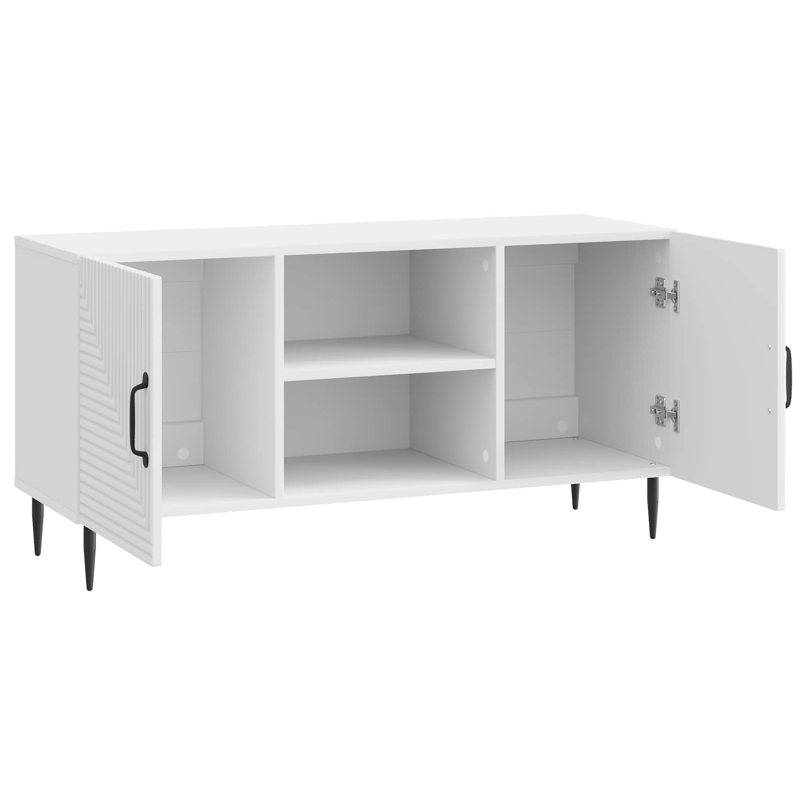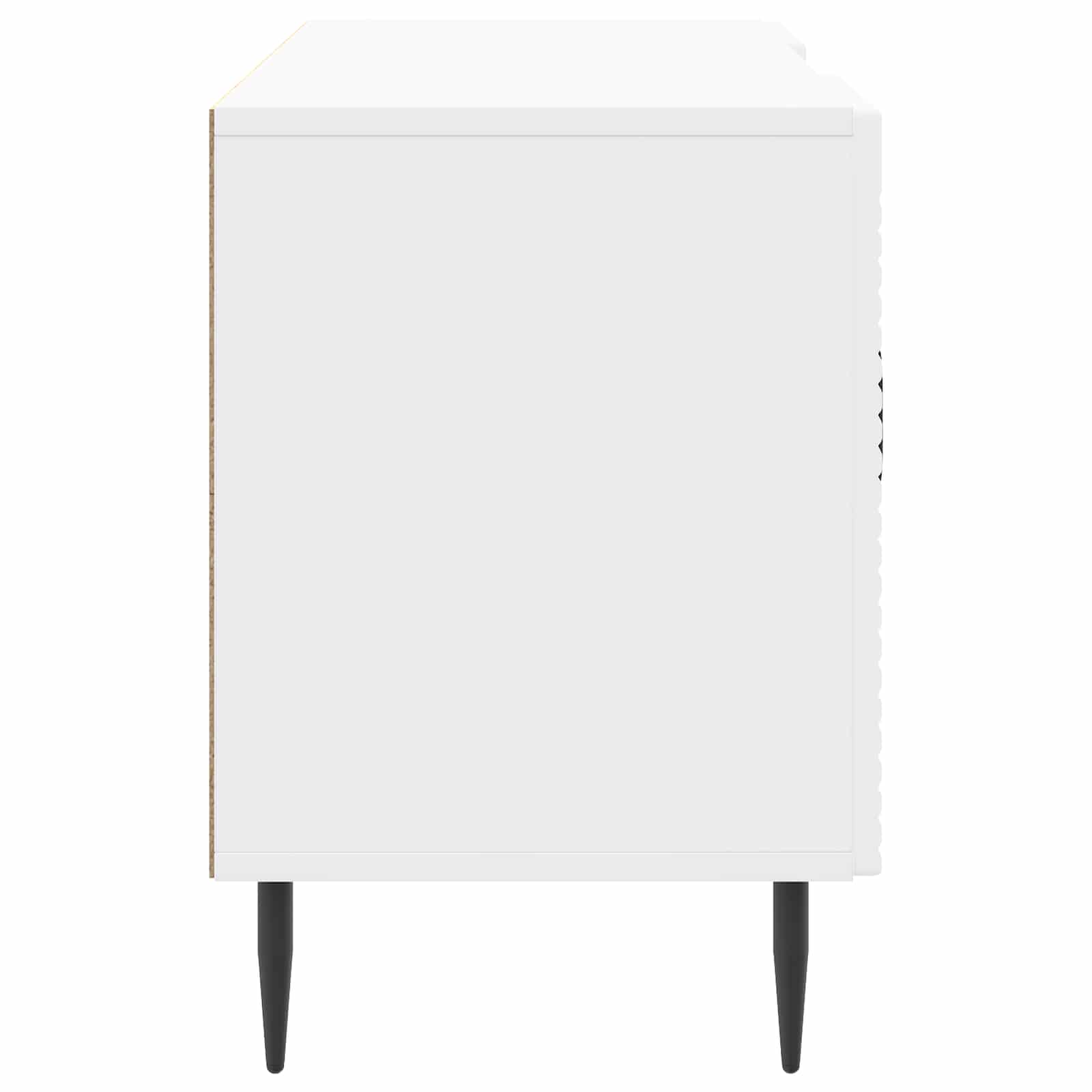 Ta vsestranska vintage omarica za TV je odlična izbira za vse, ki iščejo funkcionalnost in slog. Z nizkim dizajnom se brez težav prilagodi vsakemu prostoru in ponuja praktičnost brez ogrožanja estetike. Njena pravokotna oblika nudi široko površino za sodobne ploske televizorje ali dekorativne predmete. Znotraj najdemo velike shranjevalne predale, ki so odlični za elektronske naprave in druge stvari za zabavo ter podpirajo urejen dom. Struktura iz inženirskega lesa Ta omarica za TV je narejena iz inženirskega lesa, izbranega zaradi njegove trpežnosti in stila. Ta material dodaja vintage ozračje in estetsko privlačnost vsaki dnevni sobi ter obdržuje visoko funkcionalnost. Stilne zožene noge Z zoženimi kovinskimi nogami, omarica prinaša eleganten pridih in dober sodoben videz. Te noge nudijo stabilnost za različne postavitve doma ter dodajajo občutek lahkotnosti. Tako je praktična in modna izbira, ki zadržuje tako estetiko kot uporabnost. Obilen notranji prostor za shranjevanje Z veliko prostora, ta omarica ponuja obilo možnosti shranjevanja s prilagodljivimi policami za vse vaše osebne ali medijske stvari. Te prilagodljive police omogočajo, da si prilagodite prostor po lastnih željah, bodisi za shranjevanje knjig, elektronike ali dekorativnih dodatkov. Priročnost barnih ročajev Z elegantnimi črnimi ročaji, vrata omarice nudijo enostaven dostop in vizualno privlačnost. Ti dolgi ravni ročaji so usklajeni z dizajnom omarice, nudijo enostavno uporabo ter sodoben pridih vintage estetike, ki bo všeč vsem oblikovalcem. Enostavna oskrba & vzdrževanje Ta omarica je zasnovana za enostavno dnevno vzdrževanje; le obrišite jo z vlažno krpo, da ohranite njen videz. To pomeni malo dela in dolgotrajno ohranitev lepote kosi, ki ostaja sveža in privlačna.