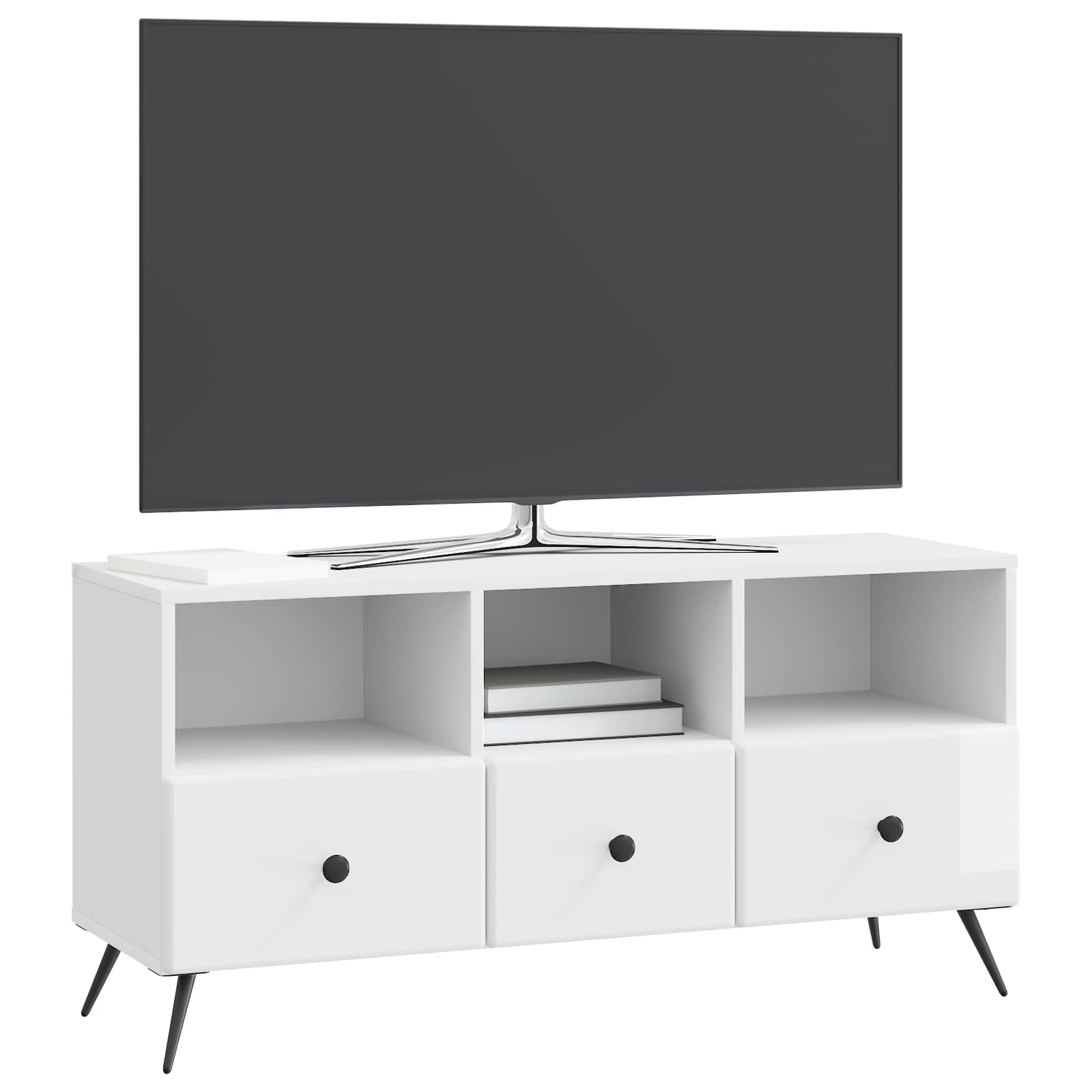 Ta zabavni center preoblikuje vaš bivalni prostor, združuje funkcijo in moderen stil. Prijazen je za vse življenjske sloge in je kot nalašč za vašo televizijo ter elektroniko, saj se brez težav zlije v sodobna okolja ter ponuja dovolj prostora za vse nujne stvari in dekoracijo. Funkcionalno shranjevanje: S številnimi predali ta zabavni center drži vaše medijske stvari dobro organizirane. Ima police, na katerih potegnemo igralne konzole ali zvočnike, predali pa poskrbijo za daljince in manjše pripomočke. Prostorna zasnova omogoča lepo razstavo dekorativnih predmetov, kar bo v vašo dnevno sobo prineslo eleganco. Moderna estetika: Elegantna zasnova je narejena za izboljšanje sodobnih notranjosti, s čistimi linijami in stilizirano obdelavo, ki se lepo ujame z različnimi dekorativnimi temami. Idealno za urbane sloge življenja, preprečuje nered in ohranja vse v redu, kar vam omogoča, da se osredotočite na zabavo. Učinkovito upravljanje kablov: Vgrajeni grommeti skrbijo za diskretno skrivanje kablov ter ohranjajo prostor urejen. Učinkovito obvladajo vse žice, kar zagotavlja, da tehnologija in stil naravno sobivata v vašem domačem okolju. Prilagodljivost: Ta kos ni zgolj televizijska omara; služi več funkcijam – lahko je stranska omara ali medijska omara v različnih nastavitvah. Njegova prilagodljivost je super za vse vrste druženj, od udobnih večerov s prijatelji do živahnih srečanj. Enostavna sestava: Sestavljanje zahteva le dva človeka in izvijač, kar omogoča hitro postavljanje. Ta udobnost doma pomeni hitro prilagoditev v vaš prostor, kar izboljša uporabnost brez dražjega nastavljanja.