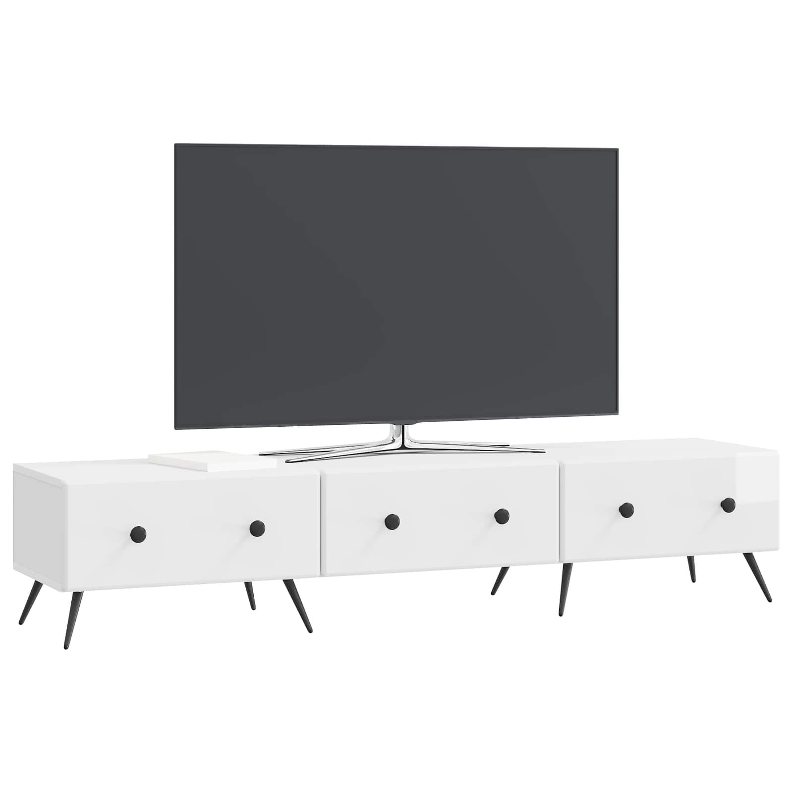 Ta zabavni center povezuje stil in funkcionalnost v enem modernem dizajnu, ki je idealen za sodobno dnevno sobo. Njegova struktura je zasnovana za sprejem različnih medijskih naprav in ponuja dovolj možnosti za shranjevanje, kar poskrbi za urejen prostor. S svojim elegantnim in poliranim videzom prinaša pridih sofisticiranosti v vašo notranjost in se enostavno prilega vsakemu slogu. Ta enota združuje praktičnost in estetski čar, kar jo naredi kot nujen kos pohištva za vsakoga, ki želi izboljšati svoj bivalni prostor. Obilen prostor za shranjevanje: Ta zabavni center ima več predelov, vključno s policami in predali, kar omogoča dobro organizacijo medijskih naprav, DVD-jev in drugih nujnosti. Vsako shranjevanje je zasnovano za maksimalno uporabnost, kar zagotavlja enostaven dostop in urejenost prostora. Več funkcionalnih možnosti: Ne gre samo za enoto za shranjevanje, ta kos tudi služi kot zanesljivo televizijsko stojalo, ki podpira različne velikosti zaslonov. Povezuje praktične shranjevalne rešitve in prostor za zabavo, kar pokriva vse vaše potrebe v enem kosu pohištva. Soden dizajn: Eleganten in sodoben stil tega zabavnega centra prinaša aktualen pridih v vsak prostor. Čiste linije in minimalistični videz ga naredijo za odlično izbiro za različne notranje postavitve, od industrijskih do minimalističnih. Učinkovitost prostora: Ta enota je zasnovana kompaktno in izkorišča vaš bivalni prostor, ne da bi ga preobremenila. Je odlična izbira za stanovanja ali manjša bivalna okolja, kjer je ključna učinkovitost prostora. Montaža potrebna: Enota zahteva malo montaže, kar zagotavlja, da so vse komponente pravilno nameščene za maksimalno stabilnost in funkcionalnost. Jasna navodila so vključena in opisana, kako zaporedno sestaviti, da dosežete najboljše rezultate.