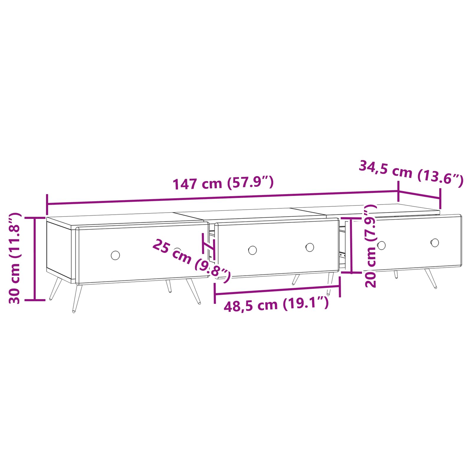 - Splošne dimenzije: 147 x 34,5 x 30 cm (D x Š x V)
