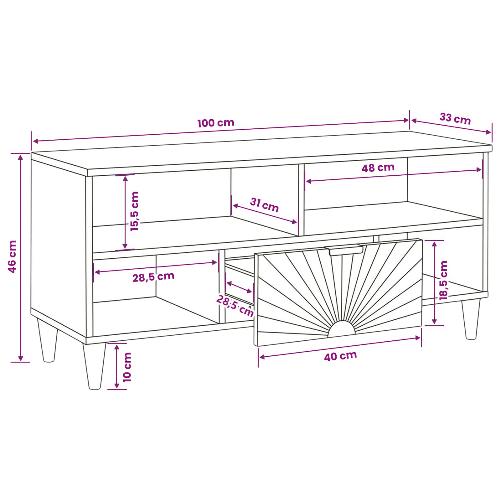 - Splošne dimenzije: 100 x 33 x 46 cm (D x Š x V)
