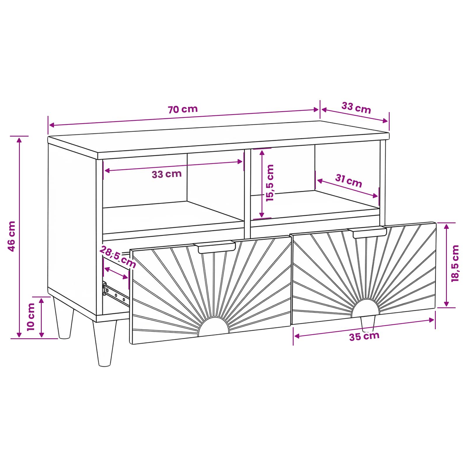 - Splošne dimenzije: 70 x 33 x 46 cm (D x Š x V)