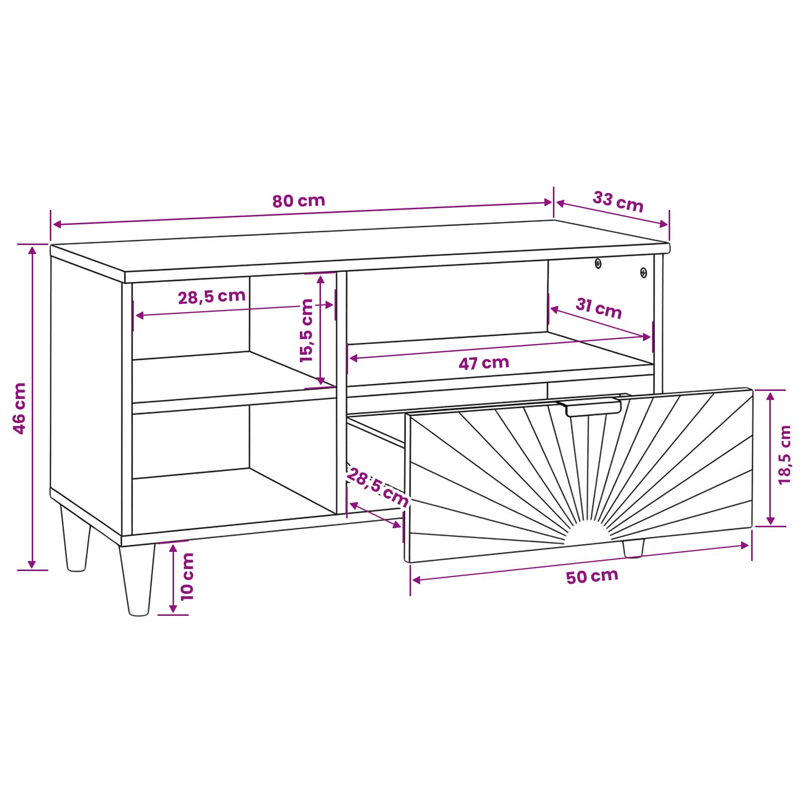 - Splošne dimenzije: 80 x 33 x 46 cm (D x Š x V)