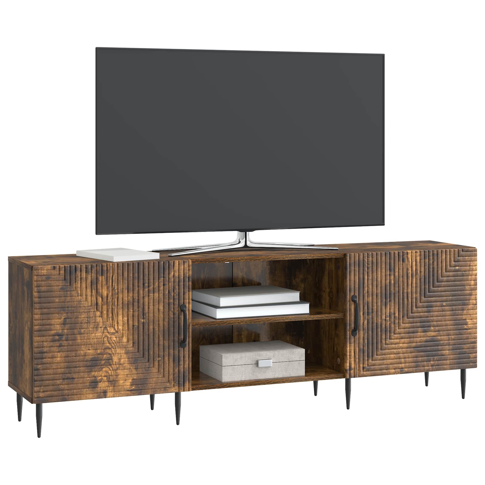 Moderna TV omarica je kul nizek kos, ki bo popestril vaš dnevni prostor. Njen pravokotni design in vintage vibe dodata malo elegance, medtem ko zadošča vašim potrebam po shranjevanju. Narejena iz inženirskega lesa, ta omarica prinaša trdno površino in se dobro ujema z modernim in tradicionalnim dekorjem. Črne zožene noge jo naredijo še bolj moderno, kar ji zagotavlja osrednje mesto v vašem prostoru. Super je za shranjevanje in združuje funkcionalnost z retro oblikovanjem. Vintage oblikovanje: Ta moderna TV omarica prinaša vintage slog, ki dodaja čar vašemu prostemu prostoru. Elegantna pravokotna zasnova se super prilega različnim postavitvam in ustvarja zanimivo točko za vašo zabavo. Trajni materiali: Zasnovana iz inženirskega lesa, ta omarica je trpežna in ima črnimi kovinskimi nogami, ki nudijo odlično podporo ter lepo kontrastirajo s toplo leseno površino. Obilno shranjevanje: S prostornimi policami in 90° vrtljivimi vrati, ta omarica hrani vse medijske potrebščine in dekorativne predmete. Notranji prostor je dovolj velik za različne naprave, kar pomeni, da bo vse vedno na dosegu roke. Funkcionalne komponente: Omarica ima praktične police in vrtilna vrata, ki omogočajo enostaven dostop ter organizacijo. Z zoženimi nogami prikazuje elegantno silhueto in nudi šik prostor brez obremenitve. Navodila za nego: Čiščenje je enostavno; površino obrišete z vlažno krpo. Enostavna skrb ohranja omarico lepe in funkcionalno, montaža pa je preprosta z dvema osebama in osnovnimi orodji.
