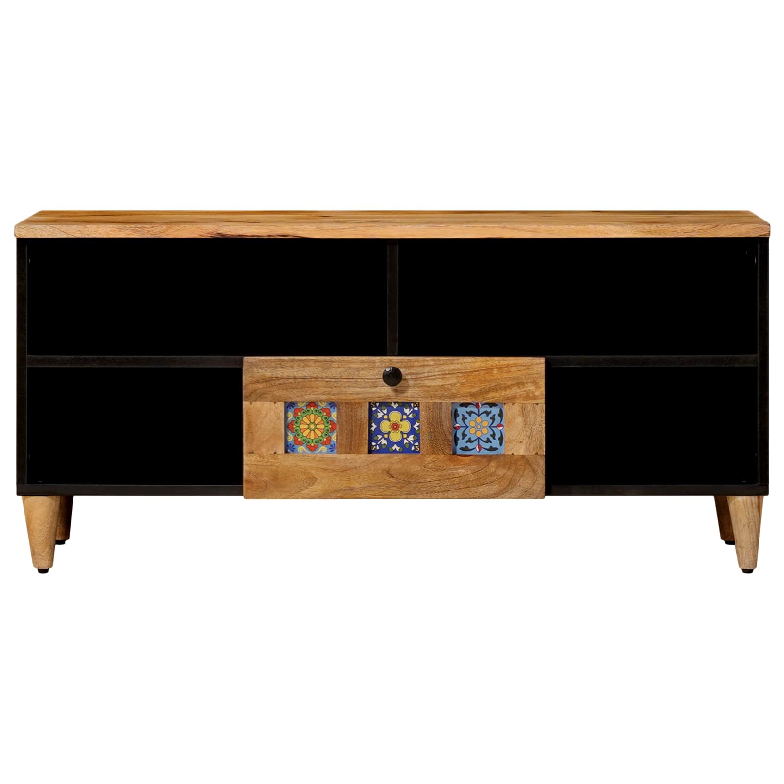 Ta moderna TV omarica združuje preprostost in eleganco s funkcionalnostjo, kar jo naredi popolno za vsak dnevni prostor. Dopolnjuje sodobne prostore in ponuja estetski videz ter praktične možnosti shranjevanja. Njena minimalistična oblika daje urejen in pregleden videz za medijske dodatke ter izboljša vaš zabavni prostor. Trden mangov les: Okvir omarice je iz trdnega mangovega lesa, kar daje prostoru naraven pridih. Ta material zagotavlja dolgotrajnost in stabilnost, kar pomeni, da prenese vsakodnevno uporabo v živahnem dnevnem prostoru. Svetli predali z gumbi: Predali z svetlimi gumbi omogočajo enostaven dostop do reči, kar olajša organizacijo. Ti dodatki ohranjajo prostor urejen in hitro dostopen. Police za vsestransko shranjevanje: Omarica ima police, ki so odlične za maksimizacijo shranjevanja. Ne glede na to, ali gre za medijske naprave, knjige ali dekoracijo, police ponujajo veliko možnosti uporabe, ob tem pa ohranjajo čist videz. Dokončan zadnji panel: Zadnji del omarice je tako funkcionalen kot estetsko privlačen, zaključen z MDF, ki dopolnjuje celotno zasnovo. Izboljšuje izgled omarice, kar ji omogoča, da lepo stoji v prostoru. Potreben je sestavljanje: Na voljo so jasna navodila za sestavljanje, kar zahteva dve osebi in izvijač. S tem je sestavljanje omarice enostavno in brez težav, kar jo naredi popolno za vikend projekt.