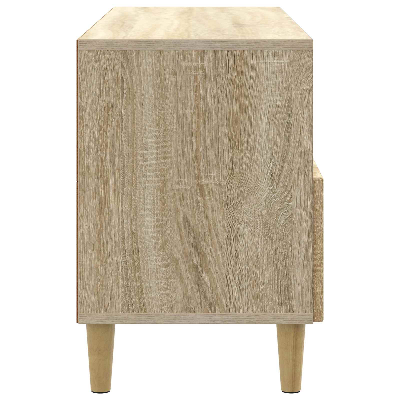 Ta moderna TV omara združuje vintage šarm in sodobno funkcionalnost, kar jo naredi idealno za vsak dnevni prostor. Njena pravokotna oblika prinaša vizualno privlačnost, saj omogoča uravnotežen prikaz medijske opreme ali dekorativnih predmetov, hkrati pa se lepo ujema z različnimi notranjimi slogi. Struktura iz inženirskega lesa Nizek šalter je izdelan iz inženirskega lesa, znanega po trdnosti in trajanju. Ta material povečuje vzdržljivost omare, ne da bi žrtvoval eleganco in dolgotrajnost v aktivnih gospodinjstvih. Obilo prostora za shranjevanje Omara nudi širok prostor za shranjevanje, primeren za medijske naprave, knjige in še več. Hiter dostop do shranjenih stvari krije organiziran prostor, ki nudi mirno okolje za sprostitev. Rjave zožene noge Njen nizki profil podpirajo zožene noge iz inženirskega lesa s toplo rjavo obdelavo. Te noge prinašajo stabilnost in eleganco, kar dobro dopolnjuje različne okrasne teme ter dviga estetiko prostora. Vsestranska funkcionalnost Omara je zasnovana za prilagodljivost, tako da služi različnim namenom, poleg shranjevanja medijev. Ne glede na to, ali jo postavite v dnevno sobo ali pisarno, njena fleksibilnost jo naredi nujno potrebno v vsakem domu. Navodila za nego Ohranite omaro v dobrem stanju s preprostim brisanjem z vlažno krpo, da odstranite prah in madeže. Enostaven postopek nege zagotavlja, da bo omara ostala lepa in delujoča skozi leta.