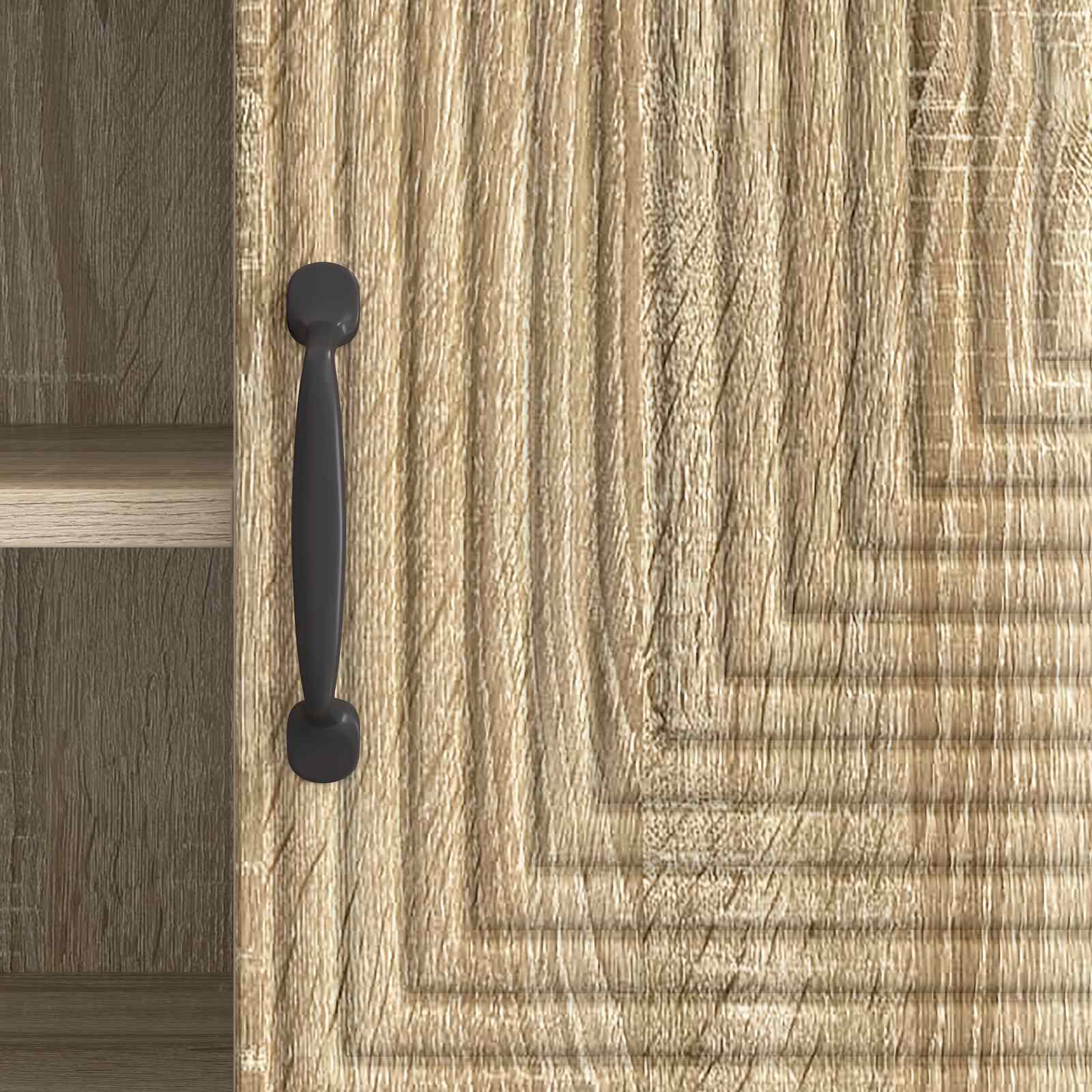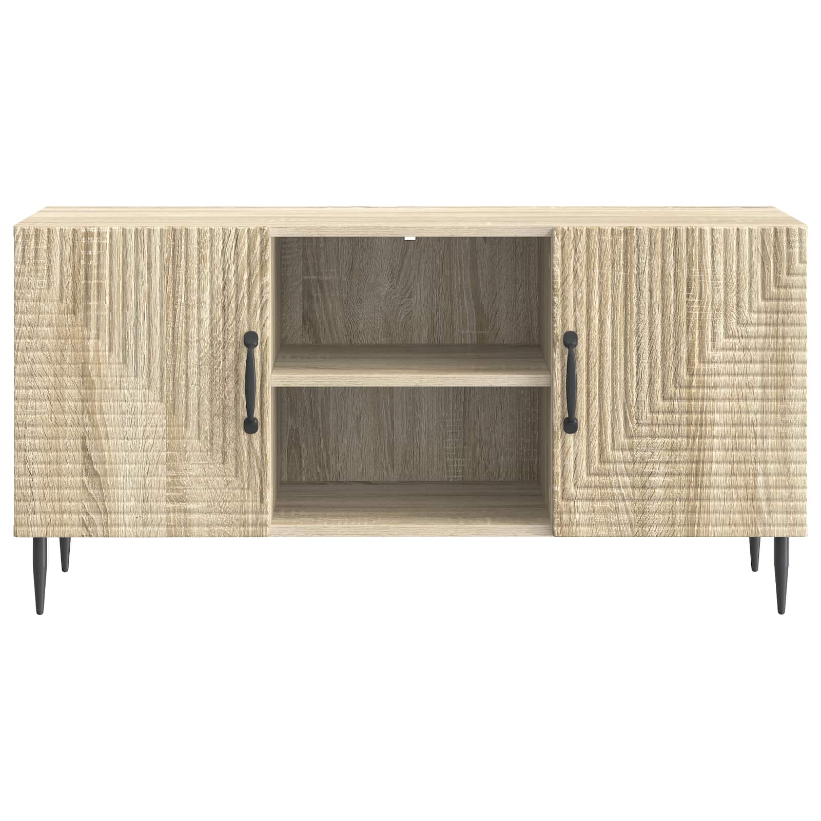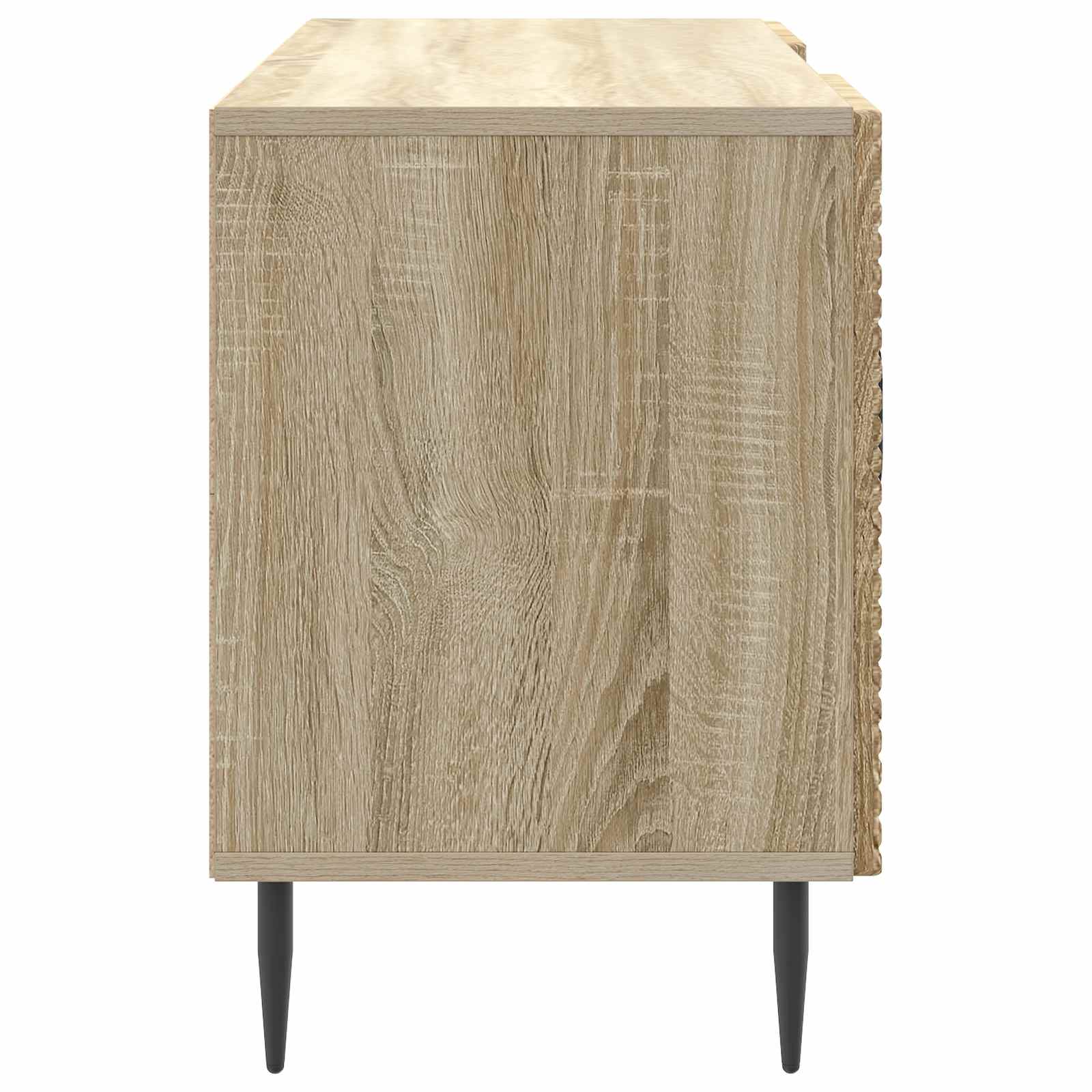 Ta vsestranska vintage omarica za TV je odlična izbira za vse, ki iščejo funkcionalnost in slog. Z nizkim dizajnom se brez težav prilagodi vsakemu prostoru in ponuja praktičnost brez ogrožanja estetike. Njena pravokotna oblika nudi široko površino za sodobne ploske televizorje ali dekorativne predmete. Znotraj najdemo velike shranjevalne predale, ki so odlični za elektronske naprave in druge stvari za zabavo ter podpirajo urejen dom. Struktura iz inženirskega lesa Ta omarica za TV je narejena iz inženirskega lesa, izbranega zaradi njegove trpežnosti in stila. Ta material dodaja vintage ozračje in estetsko privlačnost vsaki dnevni sobi ter obdržuje visoko funkcionalnost. Stilne zožene noge Z zoženimi kovinskimi nogami, omarica prinaša eleganten pridih in dober sodoben videz. Te noge nudijo stabilnost za različne postavitve doma ter dodajajo občutek lahkotnosti. Tako je praktična in modna izbira, ki zadržuje tako estetiko kot uporabnost. Obilen notranji prostor za shranjevanje Z veliko prostora, ta omarica ponuja obilo možnosti shranjevanja s prilagodljivimi policami za vse vaše osebne ali medijske stvari. Te prilagodljive police omogočajo, da si prilagodite prostor po lastnih željah, bodisi za shranjevanje knjig, elektronike ali dekorativnih dodatkov. Priročnost barnih ročajev Z elegantnimi črnimi ročaji, vrata omarice nudijo enostaven dostop in vizualno privlačnost. Ti dolgi ravni ročaji so usklajeni z dizajnom omarice, nudijo enostavno uporabo ter sodoben pridih vintage estetike, ki bo všeč vsem oblikovalcem. Enostavna oskrba & vzdrževanje Ta omarica je zasnovana za enostavno dnevno vzdrževanje; le obrišite jo z vlažno krpo, da ohranite njen videz. To pomeni malo dela in dolgotrajno ohranitev lepote kosi, ki ostaja sveža in privlačna.