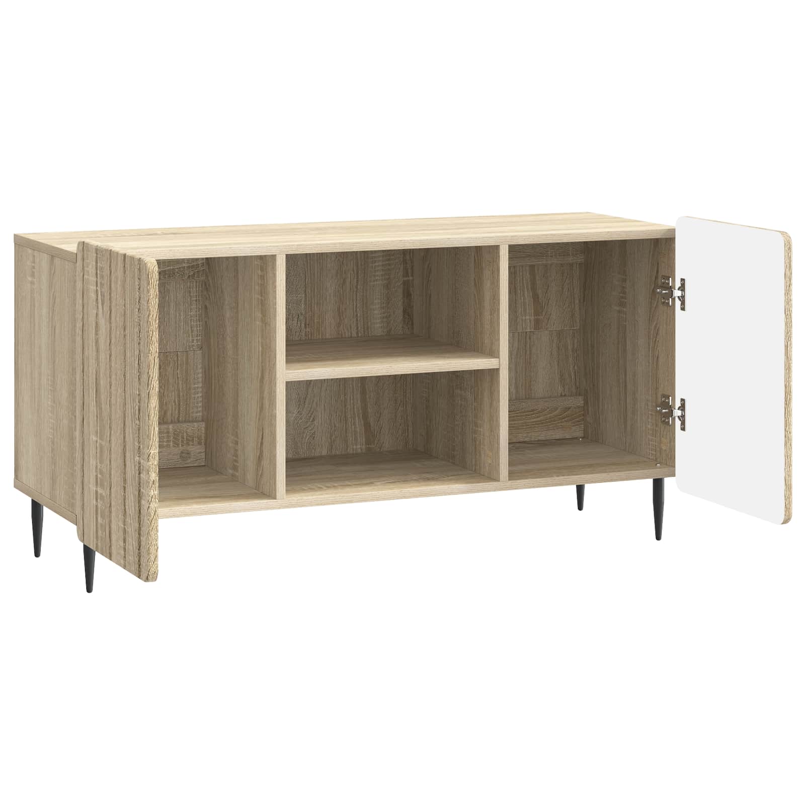 Ta moderna TV omarica je kot nalašč za vsak dnevni prostor, saj se brez napora zlije v prostor s svojim elegantnim in minimalističnim dizajnom. Izdelana iz inženirskega lesa, je trpežna, a hkrati tudi zelo elegantna in sofisticirana, kar jo dela idealno izbiro za vse, ki cenijo oboje – obliko in funkcionalnost. Ta enota se lahko uporablja na različne načine, saj združuje estetski videz in praktičnost, ki ustreza vsakemu domu skozi vse leto. Struktura iz inženirskega lesa : Ta omarica je izdelana iz kakovostnega inženirskega lesa, ki ji daje vzdržljivost in lepši videz. Je trdna, saj je ta material dokaj odporen proti upogibanju, tako da podpira vse vrste zabavne elektronike in je odlična izbira za dolgotrajno uporabo. Funkcionalne police : Ta omarica ima police, ki omogočajo shranjevanje DVD-jev, konzol in dekoracij. Police so stabilne in se lepo vključijo v minimalističen videz omarice, tako da ponujajo dovolj prostora za vse tvoje stvari. Vrata s 90° zapiranjem : Vrata se enostavno odpirajo in zapirajo, kar omogoča hiter dostop, hkrati pa zmanjšuje hrup in obrabo. Z inženirskim lesom so vrata trpežna, prinašajo pa praktičnost in eleganco v tvojo omarico, kar je idealno za skrito organizacijo. Sleek jekleni nogi : Črne jeklene noge ustvarjajo odličen kontrast z omarico, kar poudarja njen sodoben dizajn. Te močne noge tudi dvignejo omarico, zaradi česar prostor deluje bolj odprto, kar dodaja eleganten video celotnemu prostoru. Preprosto vzdrževanje : Da ohraniš omarico brez madežev, jo enostavno obriši z vlažno krpo. Tako bo vedno videti dobro in bo del tvoje dnevne sobe, pri tem pa bo ohranila svojo privlačnost in udobje v vsakdanjem življenju.