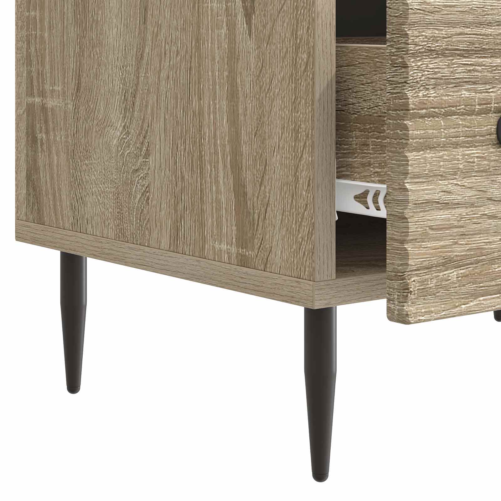 Ta stilna TV omarica združuje vintage šarm in moderno funkcionalnost, kar je odlična izbira za vsako dnevno sobo. Z nizko obliko se brez težav prilega različnim stilom notranje opreme, široka površina pa sprejme televizorje do 60 palcev. Ne glede na to, ali organizirate filmsko noč ali urejate vsakodnevne stvari, ta omarica ponuja edinstveno kombinacijo elegance in praktičnosti. Gradnja iz inženirskega lesa poskrbi za trdnost in gladko površino, ki doda piko na i vsakemu prostoru. Ta izbira materiala zagotavlja odlično trajnost in odpornost na svakodnevno obrabo, kar pomeni, da omarica ostane lepa tudi po dolgem času. Obširne možnosti shranjevanja vključujejo predale in obsežno površino, ki omogočata enostavno shranjevanje medijske opreme, dodatkov in drugih nujnosti. Pametna zasnova zagotavlja preprosto organizacijo tudi v manjših prostorih. Vintage stil prinaša kanček šarma z elegantnimi zoženimi nogami in črnimi poudarki. Ta edinstvena kombinacija daje sodoben, a brezčasni videz, kar je idealno za tiste, ki cenijo dober stil. Vsestranska uporaba se brez težav prilega v dnevne sobe ali druge prostore. Ta prilagodljivost zagotavlja, da omarica zadostuje potrebam po shranjevanju in estetiki v različnih okoljih. Enostavno vzdrževanje vključuje redno brisanje z vlažno krpo, kar pomaga ohranjati lepoto. Ta preprosta skrb obdrži privlačnost in dolgotrajnost, kar ustreza zaposlenim življenjskim slogom.