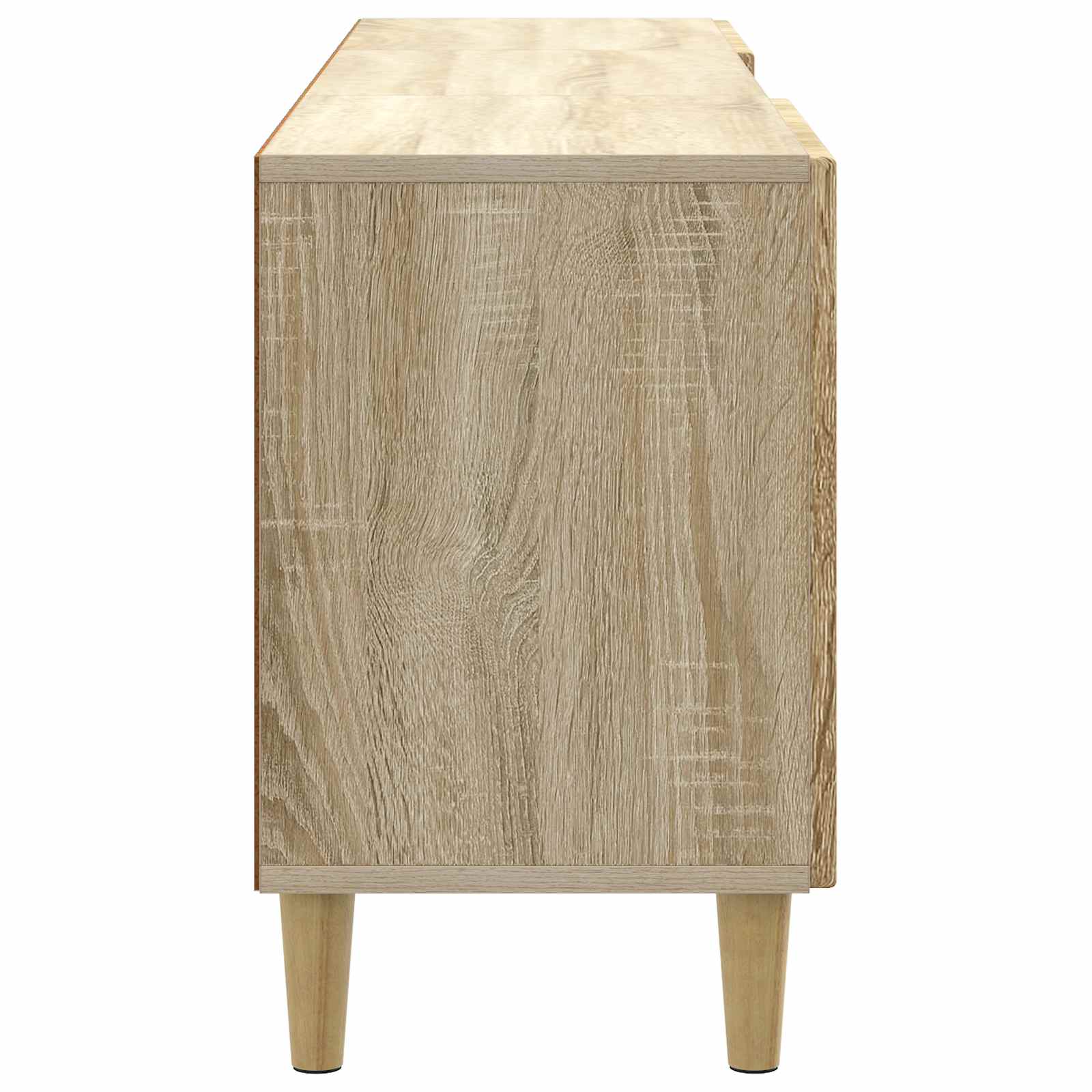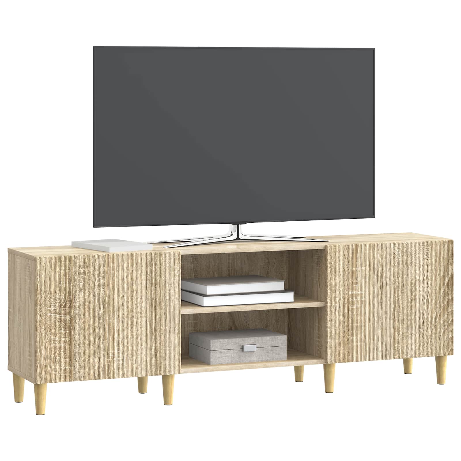 Ta moderni TV kabinet združuje vintage eleganco s praktičnostjo, kar ga naredi idealnega za vsakogar, ki išče stil v svoji dnevni sobi. Pravokotna oblika in enostavna zasnova omogočata, da se prilagodi različnim dekorativnim slogom, kar doda čar vsakemu prostoru. Ta kos je funkcionalna osrednja točka, ki nudi prostor za shranjevanje in površino za vaš televizor in dodatke. Njegova vsestranska uporaba je odlična za družine, ki želijo maksimirati prostor za shranjevanje brez kompromisov v slogu. Gradnja iz inženirskega lesa Ta TV kabinet je skrbno izdelan iz inženirskega lesa, kar mu daje trdno in robustno strukturo, ki zdrži vsakodnevno uporabo. Material zagotavlja dolgotrajnost in se lepo prilega v vsak prostor. Police iz plošč Opremljen s policami iz plošč, ta kabinet učinkovito organizira medijske bistvene elemente. Te trdne police poudarjajo dizajn in omogočajo, da prostor ostane čist in pregleden. 90° vrtljiva vrata Z vrati, ki se odpirajo do 90°, je dostop do shranjenih predmetov enostaven. Vrata omogočajo svobodo pogleda, kar izboljša funkcionalnost vašega medijskega centra. Zožene noge TV kabinet stoji na zoženih nogah, ki dodatno poudarjajo njegov eleganten profil in hkrati zagotavljajo stabilnost. Te noge pritegnejo pozornost s svojim stilnim oblikovanjem. Vsestranska uporaba Idealno za shranjevanje različnih medijskih dodatkov, vključno z igralnimi konzolami, DVD-ji in knjigami. Njegova prilagodljiva zasnova omogoča, da se spremeni glede na potrebe prostora. Ta cabinet je nujen dodatek za sprostitev.
