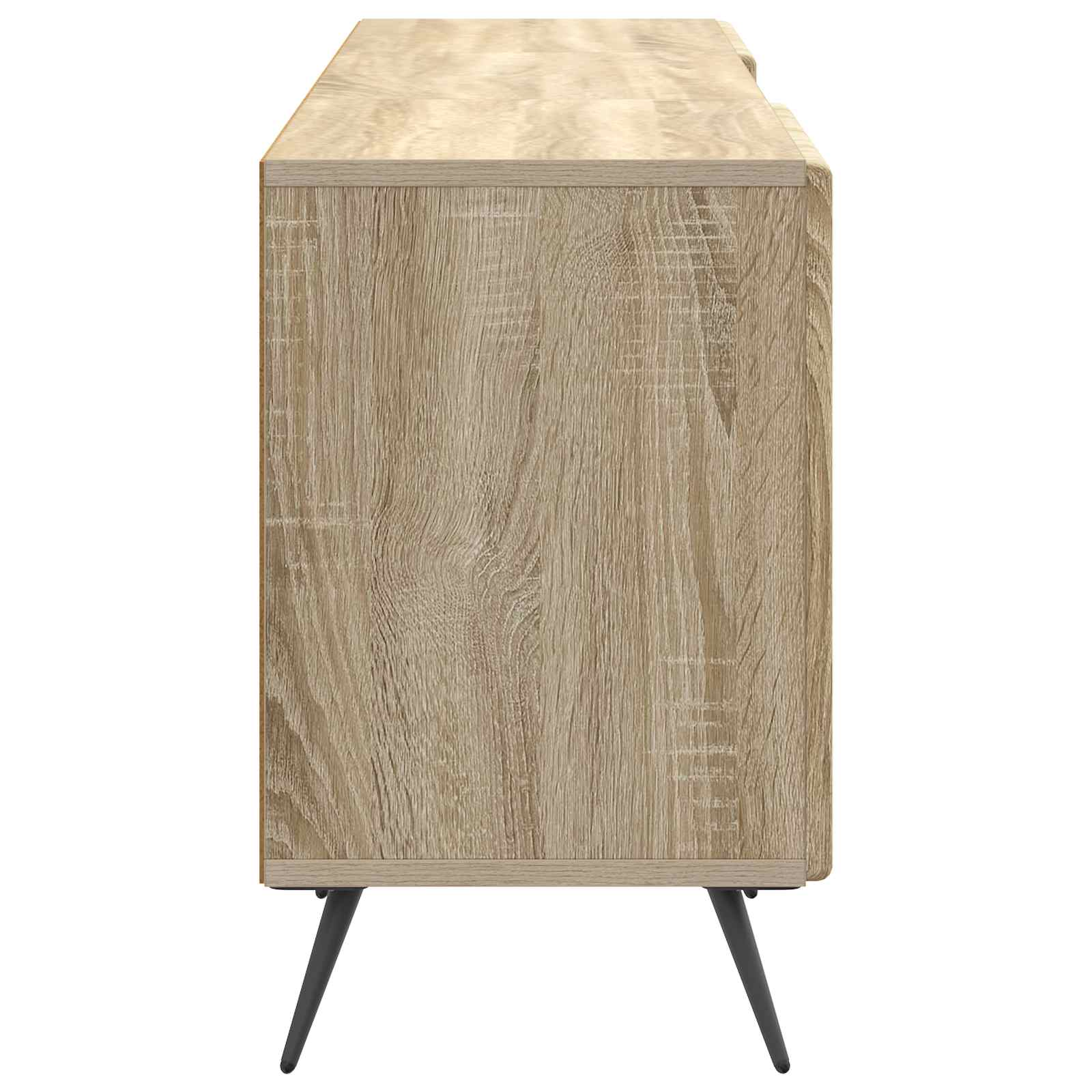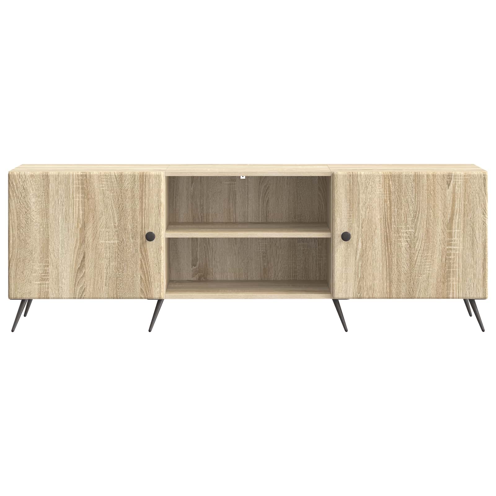 Ta vrhunska TV omara v vintage stilu dvigne vsak dnevni prostor s svojo brezčasno eleganco in uporabno zasnovo. Njena pravokotna oblika in privlačnost vintage stila jo delata popolno za vse, ki cenijo klasično estetiko, ki brez problema dopolnjuje sodobne notranjosti. Njena vizualna privlačnost izhaja iz odlične kombinacije inženirske lesa in elegantnih kovinskih elementov, kar jo naredi za sofisticirano središče vaše zabavne nastavitve, popolno za shranjevanje medijskih naprav, dekorativnih predmetov in še več. Izkušeno obrtništvo: TV omara je skrbno izdelana iz vrhunskega inženirskega lesa, kar zagotavlja dolgo trajnost v vašem prostoru. Njena robustnost je dopolnjena z bogato teksturo, ki še izboljšuje njen videz, tako da je praktična izbira in modna izjava za vaš dom. Funkcionalna zasnova: Omara ponuja veliko prostora za shranjevanje in funkcionalen predalni sistem. Tako lahko shranite medijske naprave, knjige in dekorativne stvari na urejen način. Njena premišljena zasnova omogoča enostaven dostop in organizacijo, kar prispeva k udobnemu in prijetnemu vzdušju. Elegantne kovinske značilnosti: To pohištvo s svojimi elegantnimi kovinskimi ročaji in stilskimi zoženimi nogami izžareva sodobno eleganco. Kovinski detajli se lepo ujemajo s toplimi toni lesa in dodajajo ščepec sofisticiranosti njeni vintage privlačnosti. Klasika s swing vrati: Vrata s tečaji 90° niso le praktična za enostavno odpiranje, temveč tudi doda klasičen videz omara. Omogočajo brezskrbno dostopanje do notranjih predalov, kar izboljšuje udobje in uporabniško izkušnjo. Enostavno vzdrževanje: Ohranite omaro v odličnem stanju ob minimalnem naporu. Enostavno jo obrišite z vlažno krpo, da ostane čista in videti nova, kar zagotavlja trajnost njenega videza brez težav.