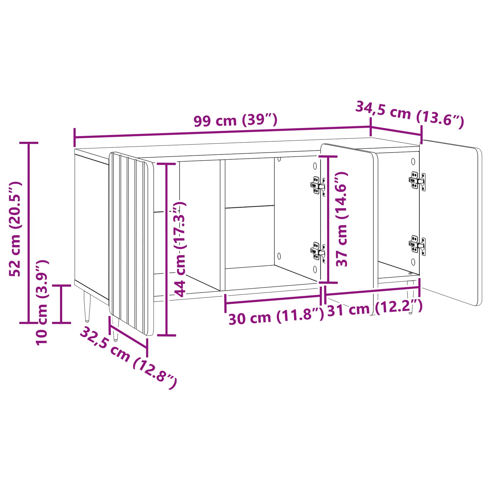 - Splošne dimenzije: 99 x 34,5 x 52 cm (D x Š x V)