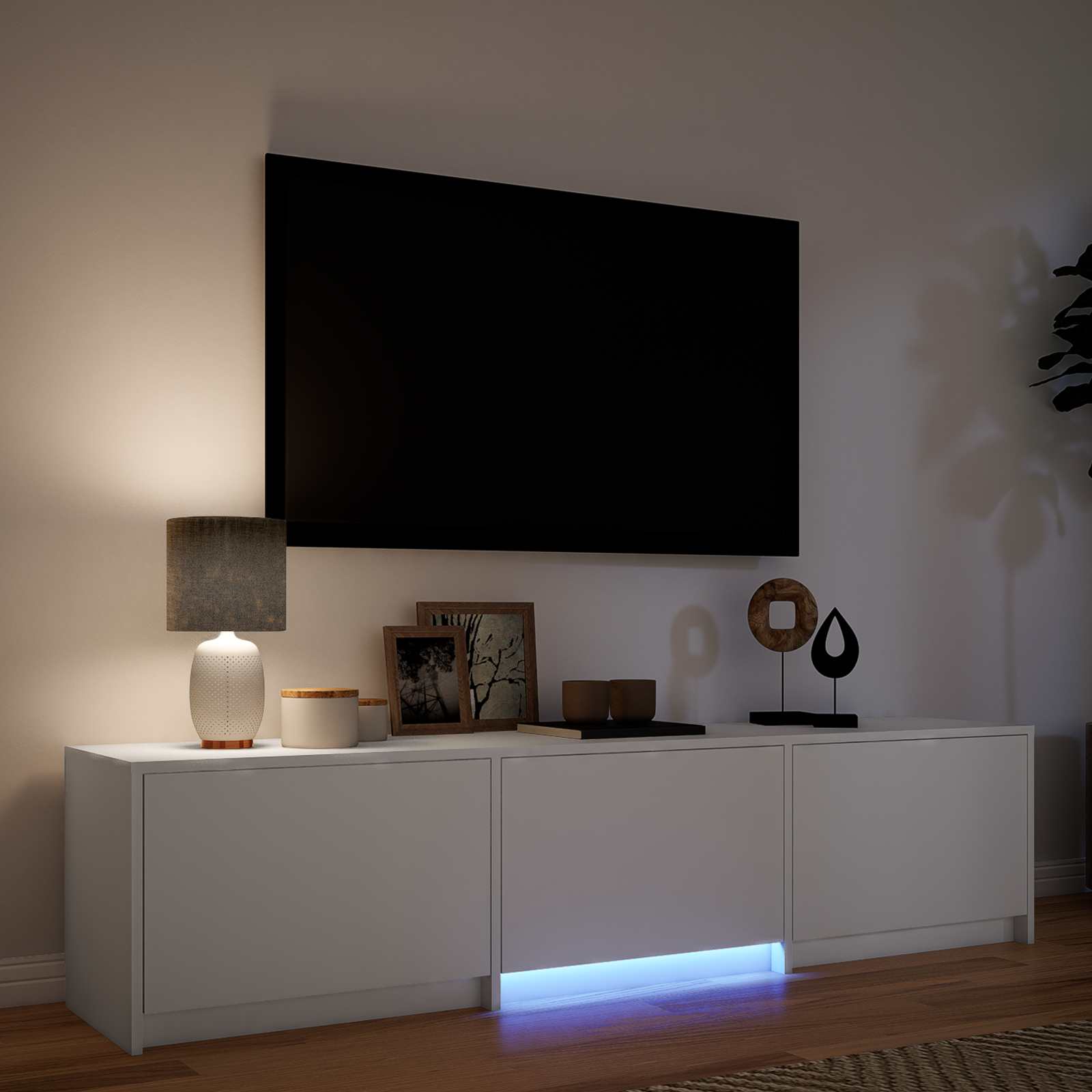 Ta TV omarica z LED lučmi je zasnovana z mislijo na funkcionalnost in praktičnost. Izdelana je iz trpežnih materialov, ki podpirajo vašo medijsko opremo in ponuja prilagodljivo osvetlitev za vaš prostor. Trajen material: Inženirski les zagotavlja trpno površino. Je vodoodporen in ne upogiba se, kar pomeni, da bo omarica dolgo ohranila svoj videz. Prostor za shranjevanje: Omarica ima predale za organizirano shranjevanje, ki nudijo dovolj prostora za medijske naprave, igralne konzole in knjige, kar pripomore k redu v vašem prostoru. Prilagodljive LED luči: RGB LED luči omogočajo prilagajanje barv in svetlosti, tako da lahko ustvarite ambient, ki vam je najbolj všeč. Stabilna zgornja površina: Ravna površina podpira televizijo in elektroniko, poleg tega pa je odlična za prikaz dekorativnih predmetov. Enostavno čiščenje: Gladka površina inženirskega lesa omogoča hitro čiščenje z vlažno krpo. Zahteva malo vzdrževanja, da ohrani svojo kakovost. Pomembno: Namestitev je treba izvesti natančno v skladu s temi navodili – sicer lahko pride do varnostnega tveganja, če je namestitev nepravilna. Redno preverjajte, ali so sidra varno pritrjena. Na stabilnost visokih predmetov lahko vplivajo debele preproge ali neravna tla. Naprava za pritrditev na steno je priložena vašemu izdelku; vendar pa boste morali pridobiti ustrezne pritrdilne elemente za vaš tip stene. Preverite morebitne električne žice ali vodovodne napeljave v steni, preden vrtate luknje (če niste prepričani, poiščite strokovni nasvet kvalificiranega trgovca). Vaša lokalna trgovina s strojno opremo bo imela potrebne svedre in pritrdilne elemente ter vam lahko po potrebi svetuje. Če ste v dvomih, se za namestitev in pritrditev izdelka obrnite na usposobljenega trgovca. Upoštevajte, da uporabljajte samo certificiran vhod DC 5 V. Višja napetost lahko povzroči pregrevanje in poškoduje napravo ter potencialno nevarnost pregrevanja in požara. Izdelka ne priključujte na noben drug napajalnik razen tistega, ki je opisan v priročniku, na tablici z imenom ali posebej priporočen s strani vidaXL. Te naprave ne smejo uporabljati otroci, stari 14 let ali mlajši, ter osebe z zmanjšanimi fizičnimi, senzoričnimi ali duševnimi sposobnostmi ali s pomanjkanjem izkušenj in znanja o uporabi elektronskih naprav. Elektrika je nevarna. Poškodba in nepravilna namestitev, uporaba ali sprememba (zamenjava posameznih komponent) lahko povzroči poškodbe enote, kar lahko povzroči električni udar in nevarnost za uporabnika. Izdelka ne uporabljajte v eksplozivnem okolju, na primer v prisotnosti vnetljivih tekočin, plinov in prahu, ali pri temperaturah nad 50 stopinj Celzija ali več. Ne vklapljajte izdelka, če sta povezovalni kabel ali napajalnik vidno poškodovana. Če je zunanji gibljivi kabel ali kabel te svetilke poškodovan, ga mora zamenjati izključno proizvajalec ali njegov serviser ali podobno usposobljena oseba, da se izognete nevarnosti. Med namestitvijo in vzdrževanjem izklopite napajanje. Prepričajte se, da so se žarnice ohladile. Svetlobni vir te svetilke ni zamenljiv; ko vir svetlobe doseže konec življenjske dobe, je treba zamenjati celotno svetilko. Samo za uporabo v zaprtih prostorih, tega izdelka ne uporabljajte na prostem.