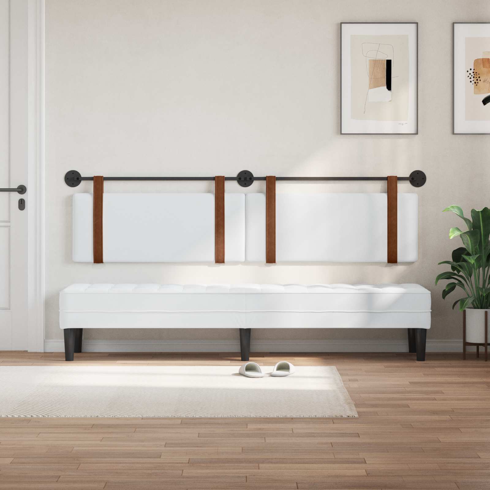To moderno vzglavje za obešanje spremeni vašo spalnico s svojim chic in prostorsko varčnim dizajnom. Z čistimi linijami in minimalnimi detajli nudi stilski izgled, ki osredotoča na praktičnost in preprostost. Pritrjena na steno, zagotavlja eleganten osrednji kos brez zavzemanja dragocenega prostora na tleh. Oblazinjena površina nudi udobje, kar jo naredi idealno za sprostitev in spanje. Enobarvni vzorec omogoča, da se prilagodi različnim slogom, kar vam daje svobodo pri oblikovanju prostora. Moderna preprostost: To moderno vzglavje za obešanje predlaga minimalistično eleganco z brezhibnim dizajnom, ki je kot nalašč za sodobne spalnice. Preprosta pravokotna oblika se lepo ujema s steno, kar je sproščujoča rešitev, ki se prilega različnim slogom pohištva. Njegova privlačnost je v preprostosti, kar nudi mirno ozadje za dober spanec. Učinkovita namestitev: Odstranljivi pasovi in enostavna namestitev na steno nudijo hitro rešitev. Primerno zasnovano, lahko ga pritrdite sami in to zagotavlja stabilnost. Fleksibilna višina omogoča, da prilagodite vzglavje, kar povečuje udobje. Oblazinjeno udobje: Z mehko oblazinjenostjo to vzglavje nudi odlično podporo za vrneck in hrbet, ko sedite v postelji. Prezračen dizajn omogoča dobro cirkulacijo zraka, kar povečuje kakovost spanja. Idealno je za tiste, ki obožujejo branje ali gledanje televizije v postelji. Vsestranskost materialov: Zgrajeno iz trpežnega inženirskega lesa in metala, to vzglavje nudi kombinacijo trdnosti in stila. Materiali so skrbno izbrani, kar zagotavlja dolgo življenjsko dobo. Ima enostaven vzorec, ki se lepo prilega minimalistični estetiki, kar zagotavlja, da vaša soba ostaja svetla in privlačna. Minimalno vzdrževanje: Zelo enostavno je ohranjati privlačnost vzglavja. Preprosto ga obrišite s suho krpo in prah se zlahka odstrani. Takšne negovalne navade omogočajo, da ostane vaš kos pohištva videti nov in udoben brez dodatnega truda.