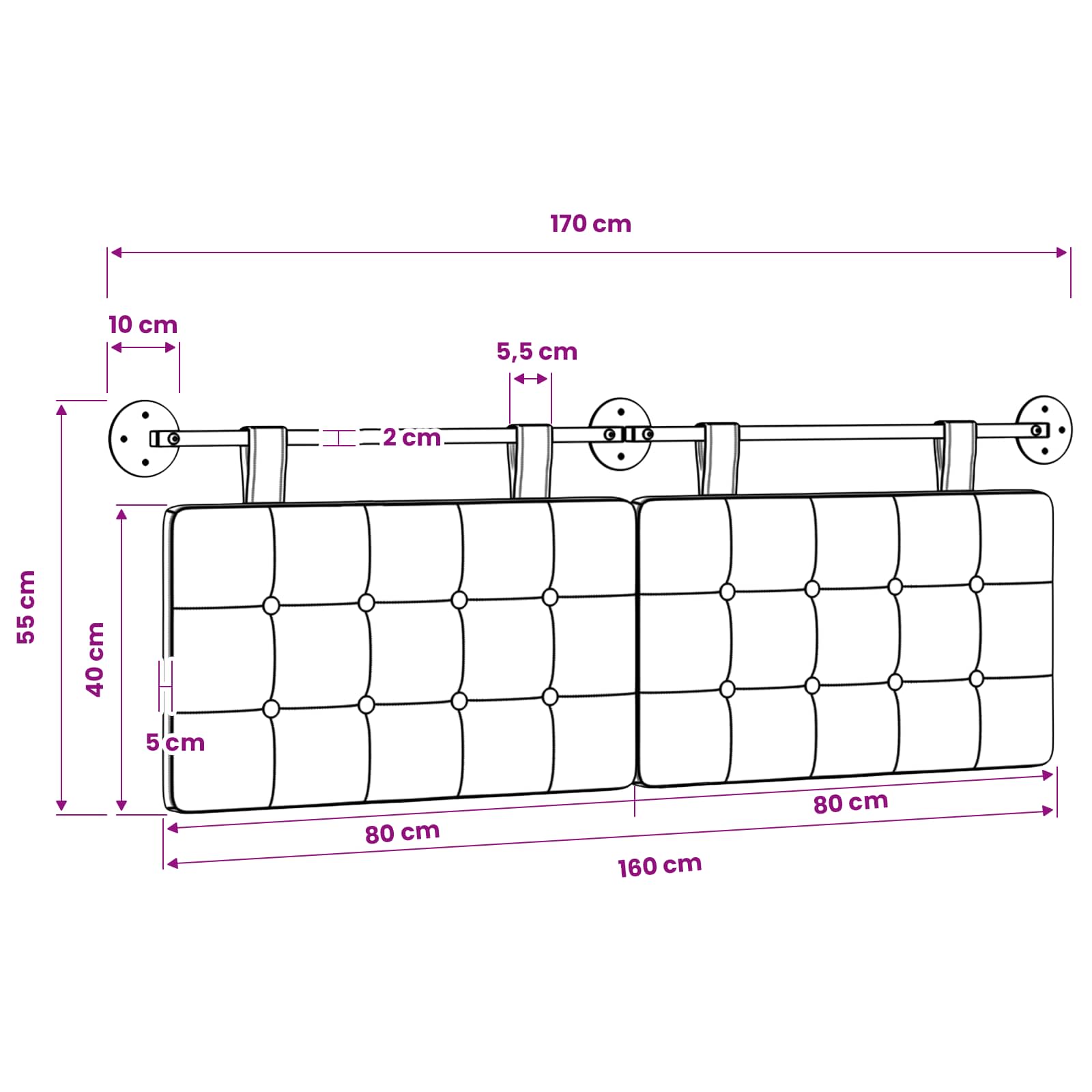Ta viseče vzglavje je moderna rešitev za vsako spalnico. Na voljo je v elegantnem dizajnu, ki prinaša čiste linije in lepoto v prostor. Popolno je za vse, ki iščejo kombinacijo elegance in praktičnosti, saj resnično izboljša izgled sobe in ustvari luksuzno vzdušje. Ne glede na to, ali gre za glavno spalnico ali sobo za goste, bo to vzglavje poskrbelo, da bo prostor videti še bolje. Materiali: To vzglavje je iz tkanine, ki je mehka in udobna. Inženirski les je močnejši in trpežnejši, zato je to super izbira za vsak dom. Materiali skupaj ponujajo kakovostno rešitev za tvoje spalniške potrebe. Vključene komponente: Komplet vsebuje jekleno letev, dve okrogli kovinski ploščici in dva odstranljiva pasova. Te komponente nudijo različne možnosti montaže na steno in zagotavljajo stabilnost ter fleksibilnost, če želiš vzglavje premikati. Vključeni so tudi vsi potrebni dodatki za enostavno namestitev. Značilnosti / funkcija / oblikovanje: Ta vzglavje se lahko varno pritrdi na steno. Njegova mehka površina nudi odlično udobje in diha, kar omogoča prijetno izkušnjo. Pritrjen in odstranljiv pas nudi dodatno prilagodljivost za nastavitev po tvoji meri. Priporočena uporaba: To vzglavje je super za različne spalnice, saj nudi tako udobje kot lepoto. Njegov dizajn se poda sodobnim prostorom in ponuja stil, ki se sklada z različnimi dekorativnimi slogi. Vzdrževanje: Vzdrževanje vzglavja je enostavno: obrišite ga s suho krpo za odstranitev prahu. Da vzglavje ohrani lep videz, se izogibajte močnim kemikalijam in abrazivnim materialom.