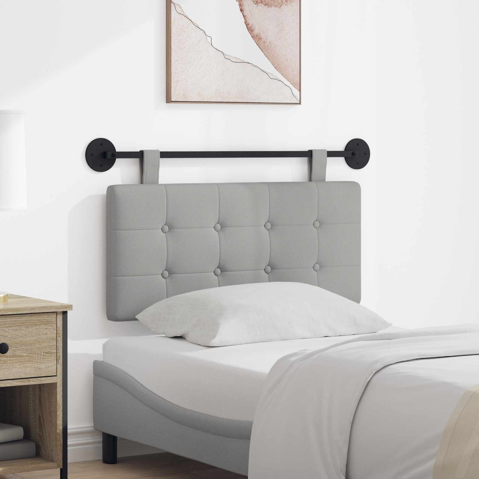 Ta viseče vzglavje je moderna rešitev za vsako spalnico. Na voljo je v elegantnem dizajnu, ki prinaša čiste linije in lepoto v prostor. Popolno je za vse, ki iščejo kombinacijo elegance in praktičnosti, saj resnično izboljša izgled sobe in ustvari luksuzno vzdušje. Ne glede na to, ali gre za glavno spalnico ali sobo za goste, bo to vzglavje poskrbelo, da bo prostor videti še bolje. Materiali: To vzglavje je iz tkanine, ki je mehka in udobna. Inženirski les je močnejši in trpežnejši, zato je to super izbira za vsak dom. Materiali skupaj ponujajo kakovostno rešitev za tvoje spalniške potrebe. Vključene komponente: Komplet vsebuje jekleno letev, dve okrogli kovinski ploščici in dva odstranljiva pasova. Te komponente nudijo različne možnosti montaže na steno in zagotavljajo stabilnost ter fleksibilnost, če želiš vzglavje premikati. Vključeni so tudi vsi potrebni dodatki za enostavno namestitev. Značilnosti / funkcija / oblikovanje: Ta vzglavje se lahko varno pritrdi na steno. Njegova mehka površina nudi odlično udobje in diha, kar omogoča prijetno izkušnjo. Pritrjen in odstranljiv pas nudi dodatno prilagodljivost za nastavitev po tvoji meri. Priporočena uporaba: To vzglavje je super za različne spalnice, saj nudi tako udobje kot lepoto. Njegov dizajn se poda sodobnim prostorom in ponuja stil, ki se sklada z različnimi dekorativnimi slogi. Vzdrževanje: Vzdrževanje vzglavja je enostavno: obrišite ga s suho krpo za odstranitev prahu. Da vzglavje ohrani lep videz, se izogibajte močnim kemikalijam in abrazivnim materialom.