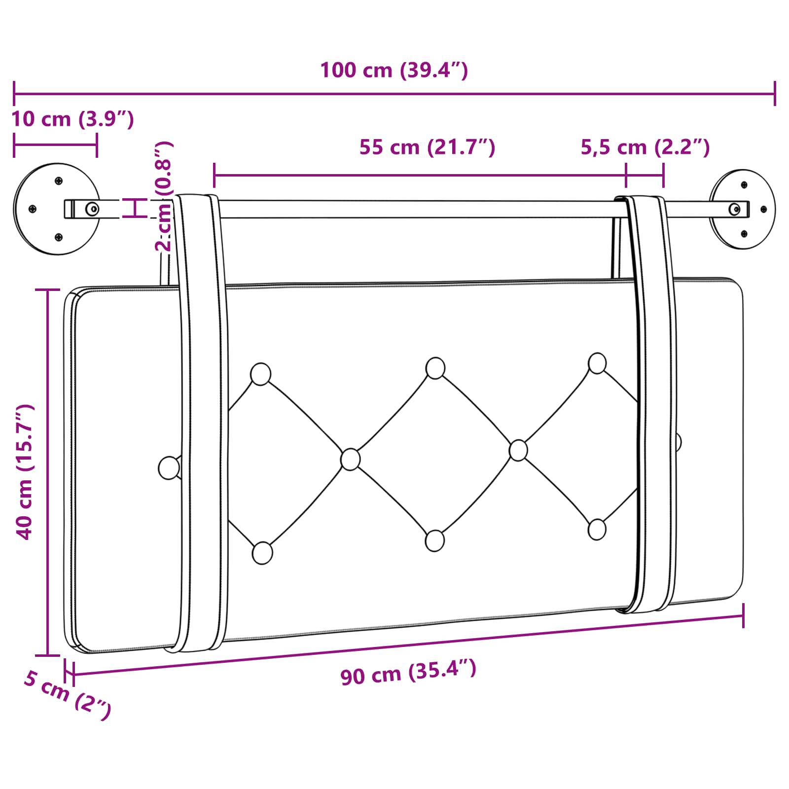 - Velikost plošče vzglavnika: 90 x 40 x 5 cm (š x g x v)