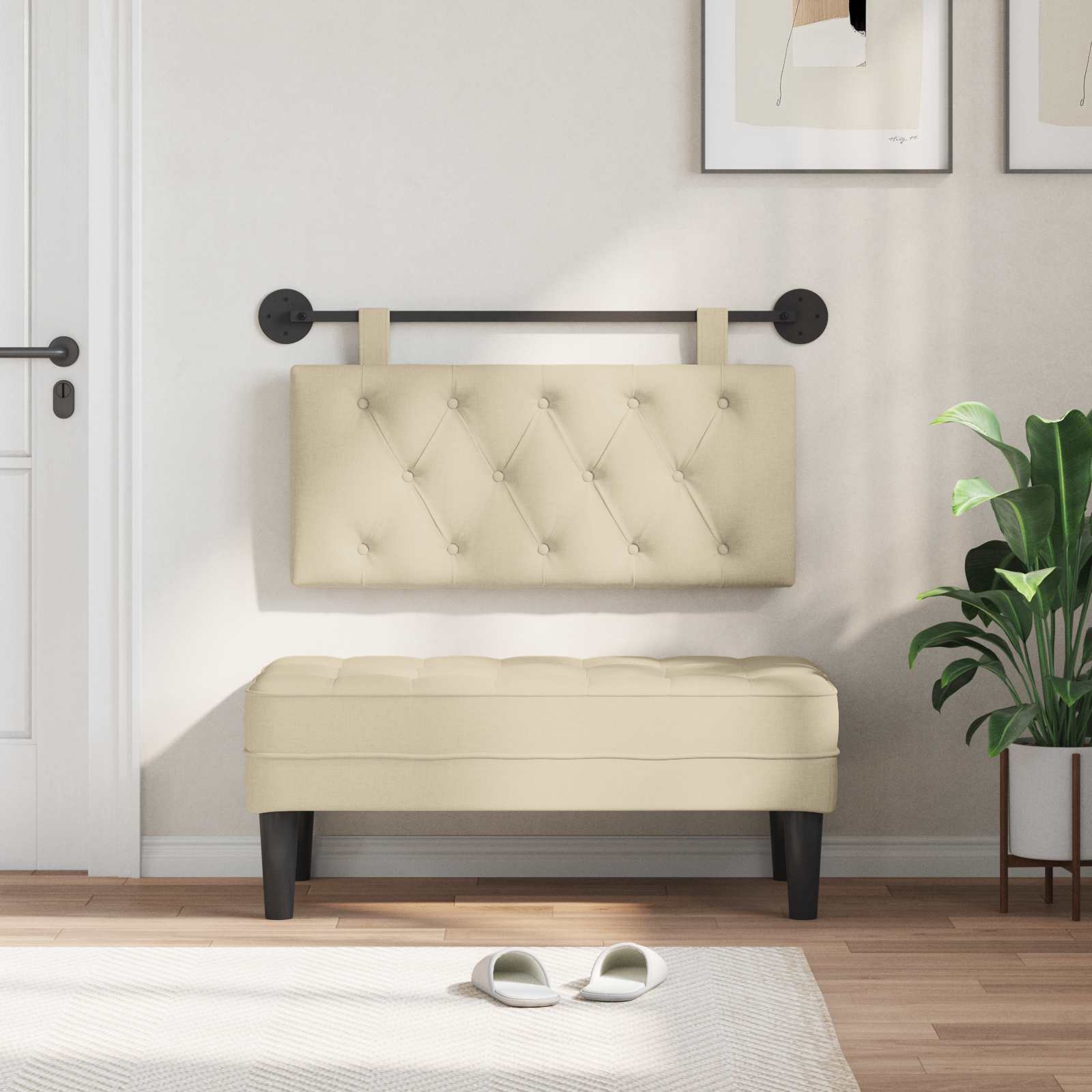 To fleksibilno viseče vzglavje je super tako za funkcionalnost kot za slog. Odlično služi kot vzglavje ali prijetno naslonjalo v različnih prostorih. Sodobna zasnova z belimi linijami in minimalisti dodaja eleganco skoraj povsod. Z dodatkom gumba čutiš razkošje, hkrati pa se brez težav zlije v spalnice, jedilnice ali predsobe. Mehka oblazinjena tkanina naredi vzdušje res prijetno. Kvalitetni materiali: Vzglavje je iz mehke tkanine in pene, ki nudita udobje. Leseni okvir pa doda trdno podporo in večjo vzdržljivost. Kvalitetni materiali zagotavljajo dolgotrajno ugodje in so zanesljiva izbira za vsakodnevno rabo. Priložene komponente: V paketu je prašno premazana kovinska tirnica in dve okrogli kovinski plošči, kar pomeni, da imate vse za namestitev. Dolgi odstranljivi pasovi omogočajo prilagoditev, dodatki za delno sestavljanje pa poenostavijo postopek. Sofisticirana viseča zasnova: Priklop na steno pomaga pri varčevanju s prostorom. S tem se zniža nered na tleh in poveča prostornost, ko pa še vedno ohranja preprost videz. Super je za manjša stanovanja. Večfunkcionalna uporaba: To vzglavje prehaja tradicionalno rabo, odlično je tako za spalnice kot za jedilnice ali predsobe. Izpolnjuje različne potrebe – za sprostitev ali pa za ustvarjanje prijetne atmosfere za goste. Navodila za nego: Zelo enostavno vzdrževanje – samo z brisanjem s suho krpo. Tako ostaja lep in privlačen brez obsežnih čiščenj.