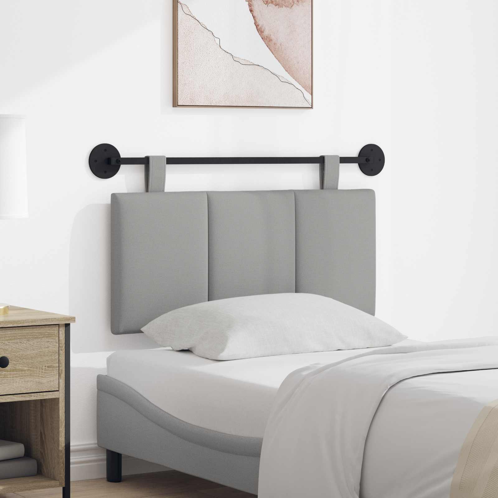 To moderno viseče vzglavje je sinonim za preprostost in funkcionalnost. Njegova elegantna pravokotna oblika in vertikalne črte povečajo vizualno privlačnost vsake spalnice. Mehka oblazinjenost vas vabi k sprostitvi, kar je odlično za udoben oddih ali branje. Idealno je za tiste, ki cenijo prefinjeno eleganco brez težav, saj se vzglavje lepo znajde v različnih notranjih slogih in doda vašemu spalnemu prostoru pridih sofisticiranosti. Eleganten tkaninski zaključek: To vzglavje iz 100% poliestra obljublja udobje in vzdržljivost. Tkanina je odporna na obrabo in ohranja mehkobo skozi čas. Integriran sistem za montažo: Opremljeno z močnim jeklenim pasačem, ta vzglavje omogoča enostavno montažo na steno in zagotavlja stabilen, čist izgled. Snemljivi pasovi: Prilagoditev vzglavja je enostavna z snemljivimi pasovi, kar nudi svobodo pri njegovem pozicioniranju in omogoča oblikovanje po vaši meri. Mehko oblazinjenje: Penasta sredica zagotavlja udobno oporo pri ležanju in dodaja prijeten občutek za boljši počitek. Preprosto vzdrževanje: Zlahka ga obdržite svežega z enostavnim brisanjem s suho krpo, kar ne zahteva dodatnih čistilnih sredstev.