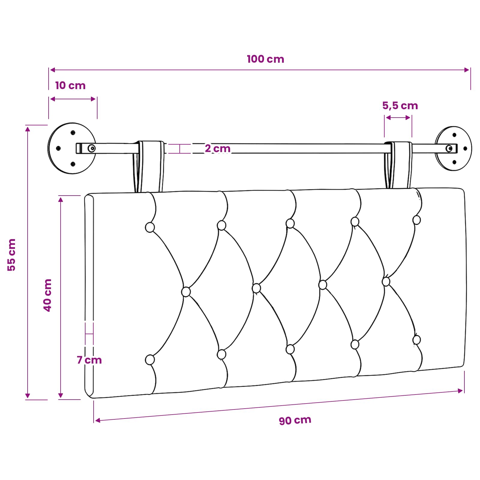 - Velikost plošče vzglavnika: 90 x 40 x 7 cm (š x g x v)