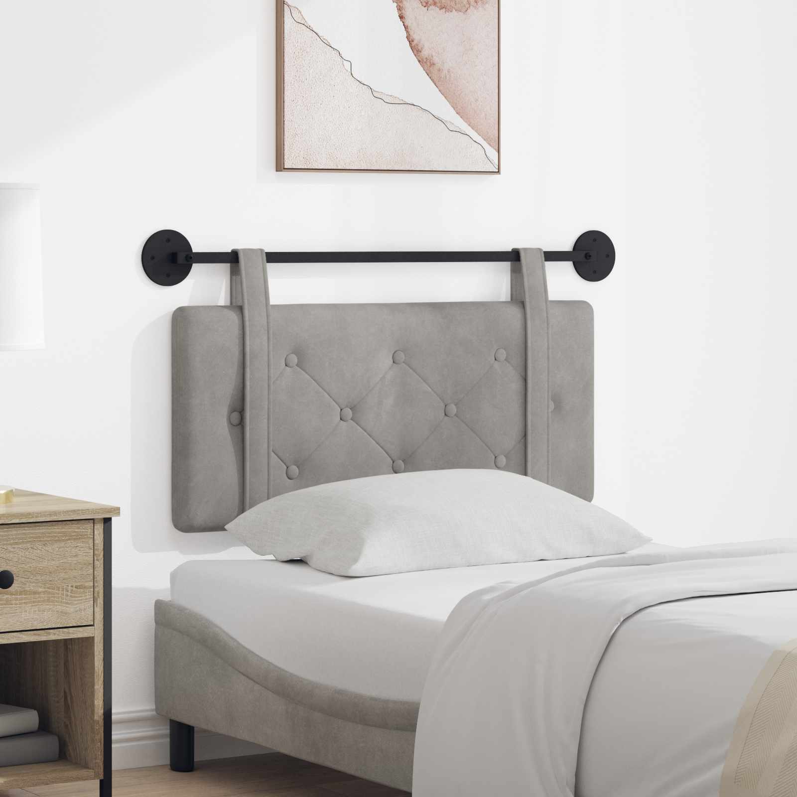 Moderen viseči vzglavnik dvigne vsako spalnico s svojim preprostim dizajnom in funkcionalnostjo. To je idealno za tiste, ki obožujejo estetski videz in prakso. Njegova pravokotna oblika in gumbkovan vzorec ne le, da se skladata s sodobnimi interjeri, ampak tudi ponujata prijetno ozadje za sprostitev. Mehko žametno oblazinjenje Nudi luksuzen občutek z mehkobo, ki je super za branje ali sproščanje. Njegova tekstura doda stil in udobje v vaš prostor. Okvir iz inženirskega lesa Nudi trdno podporo, obdrži pa lahkotnost. Pripravljen je za dolgotrajno uporabo, kar zagotavlja stabilnost vašega posteljnega seta. Gumbkovan vzorec Ta dizajn prinaša stilsko noto in dodatno udobje. Vsak gumb doda kanček elegance, kar vaše spalnice spremeni v prijetno zatočišče. Montaža na steno Zasnovan za stensko montažo, ta vzglavnik prihrani prostor in prinaša eleganten videz. Ponuja stabilnost in organizira vašo spalnico. Enostavno vzdrževanje Kratka navodila za nego. Preprosto ga obrišite s suho krpo, da ga ohranite čist in brez prahu.