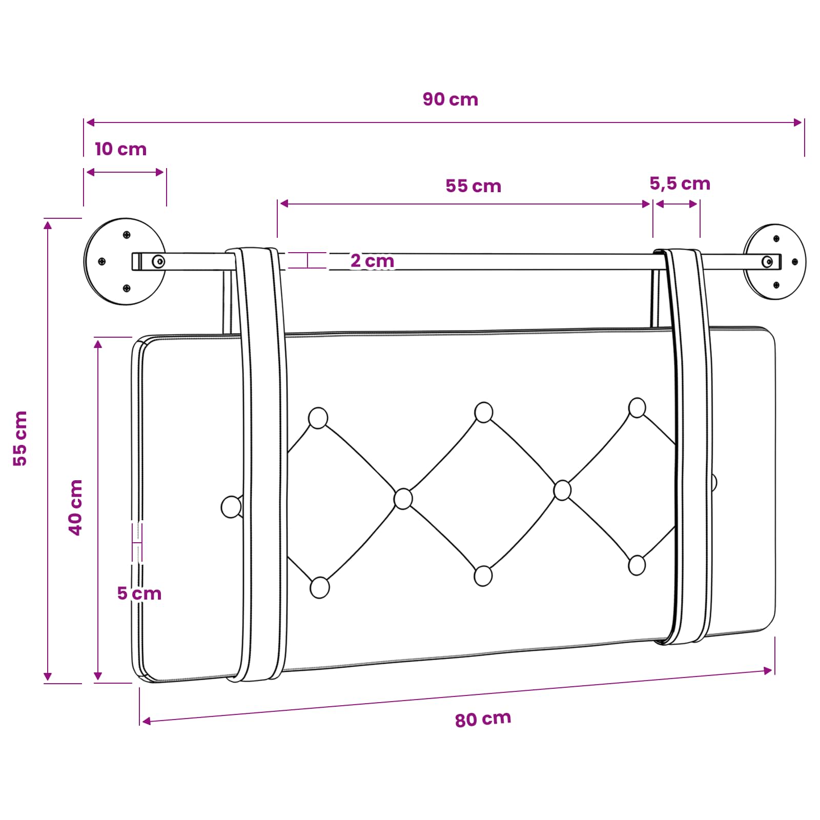 - Velikost plošče vzglavnika: 80 x 40 x 5 cm (š x g x v)
