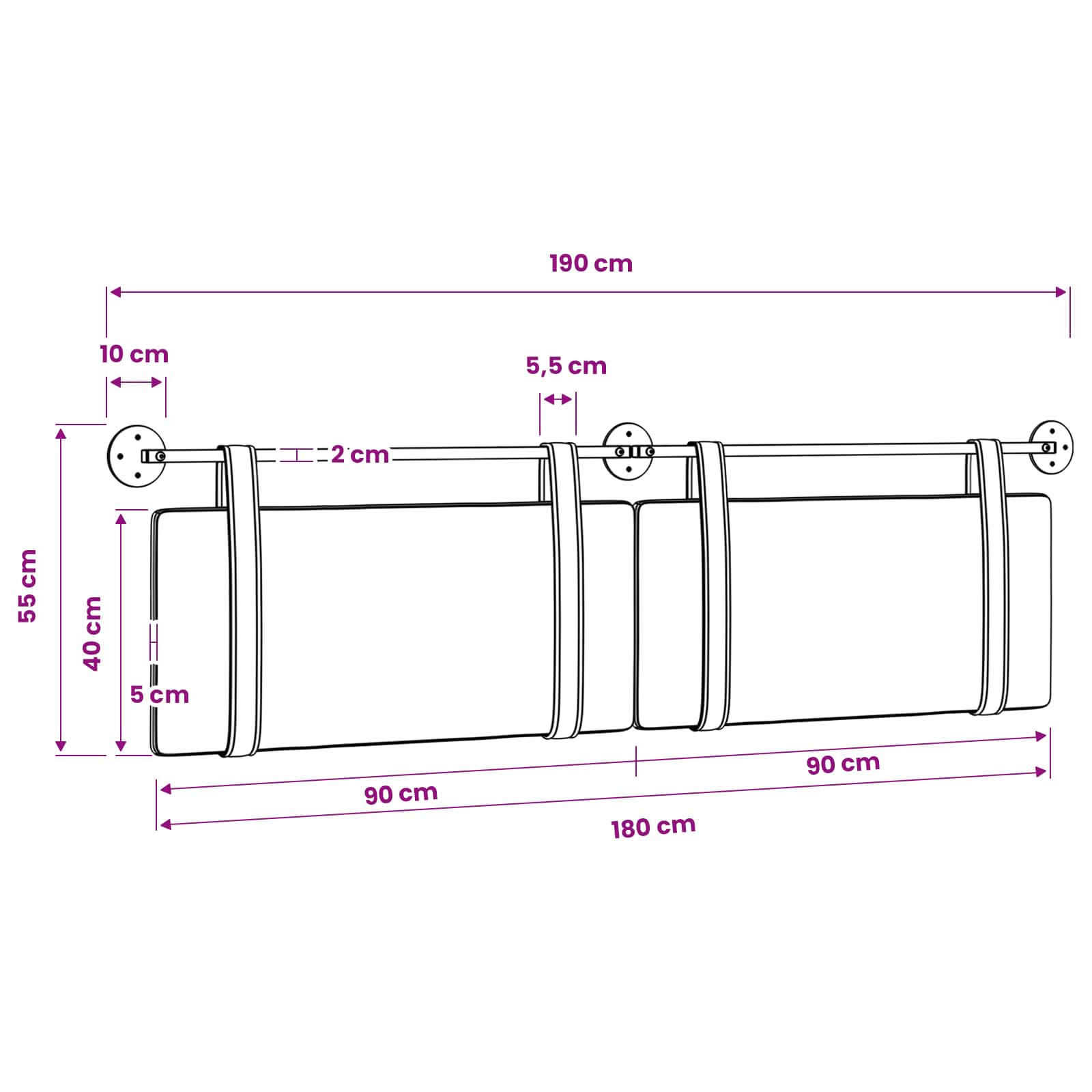 - Velikost plošče vzglavnika: 90 x 40 x 5 cm (š x g x v)