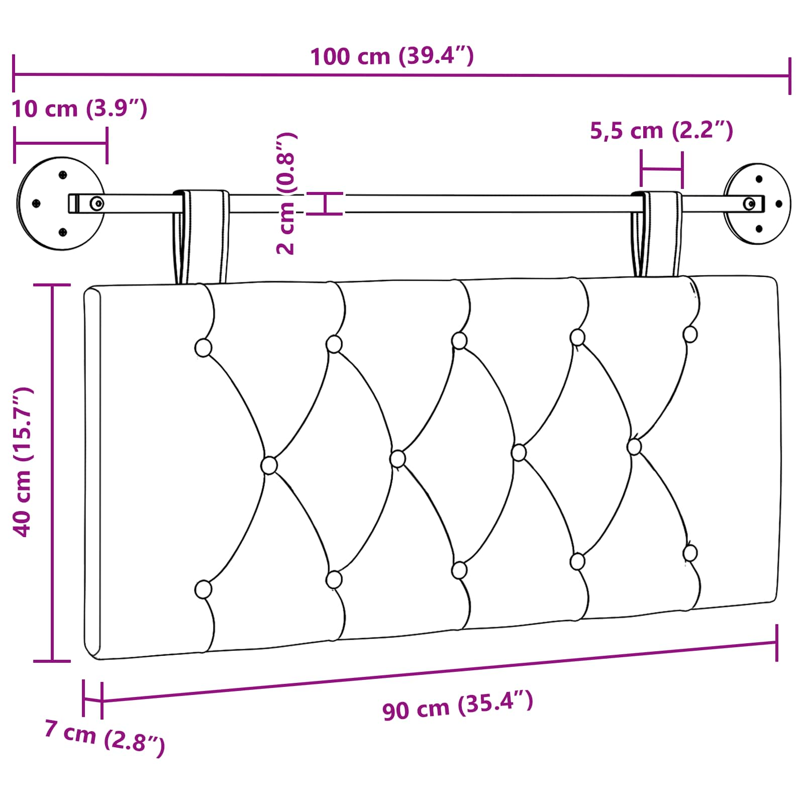 - Velikost plošče vzglavnika: 90 x 40 x 7 cm (š x g x v)