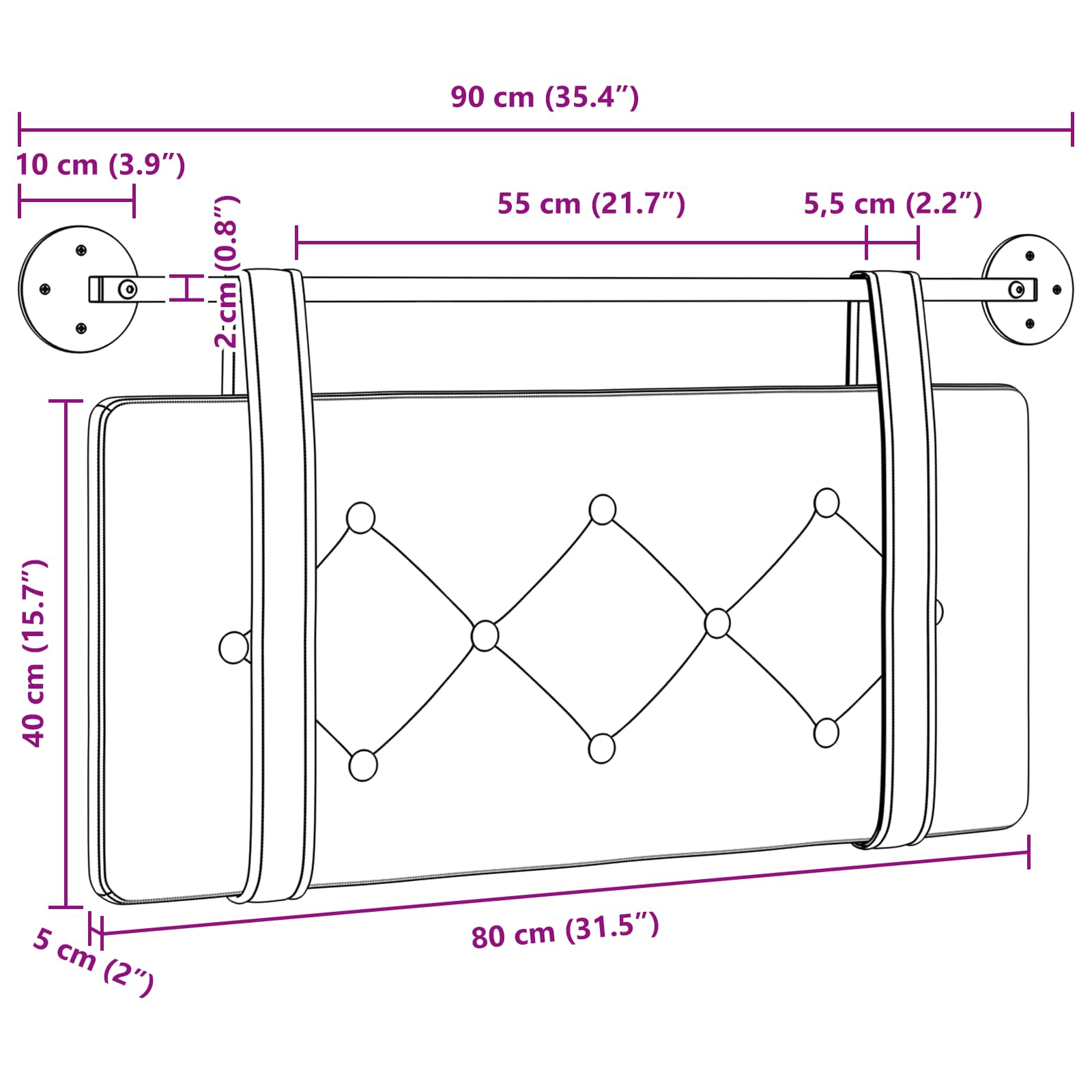 - Velikost plošče vzglavnika: 80 x 40 x 5 cm (š x g x v)