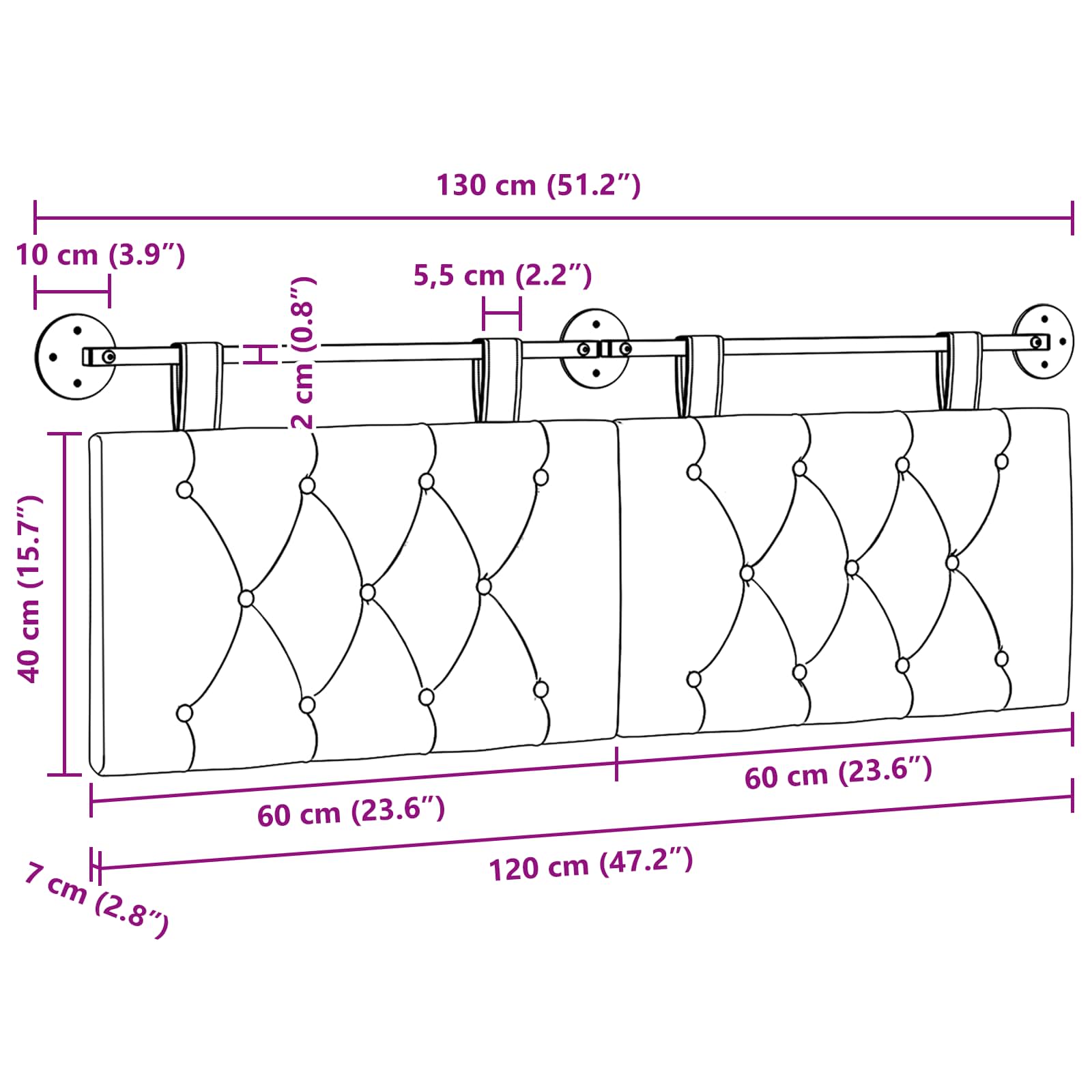 - Splošne dimenzije: 130 x 55 x 7 cm (Š x G x V)