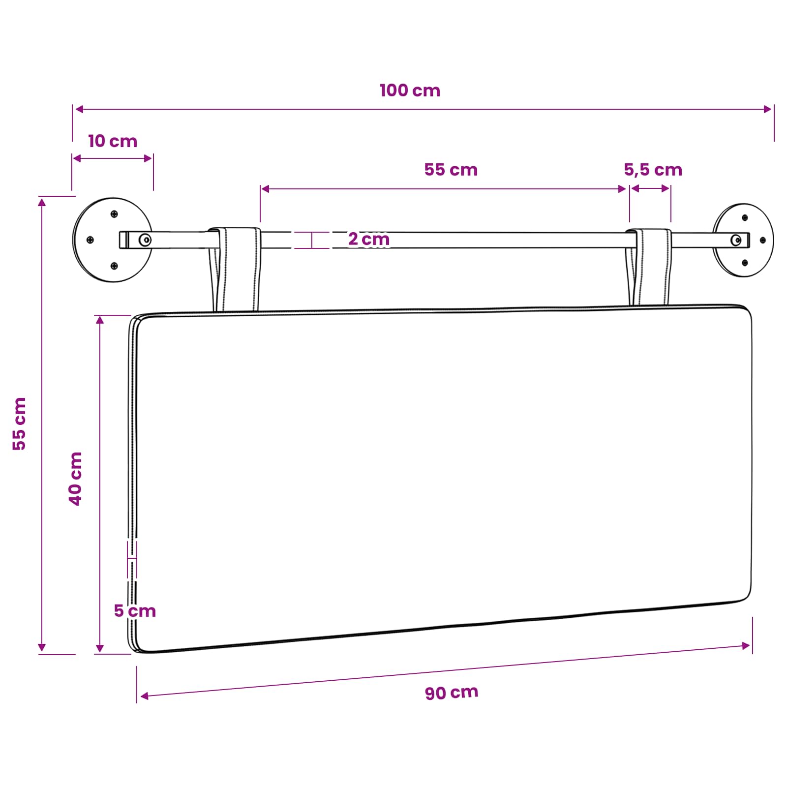 - Splošne dimenzije: 100 x 55 x 5 cm (Š x G x V)