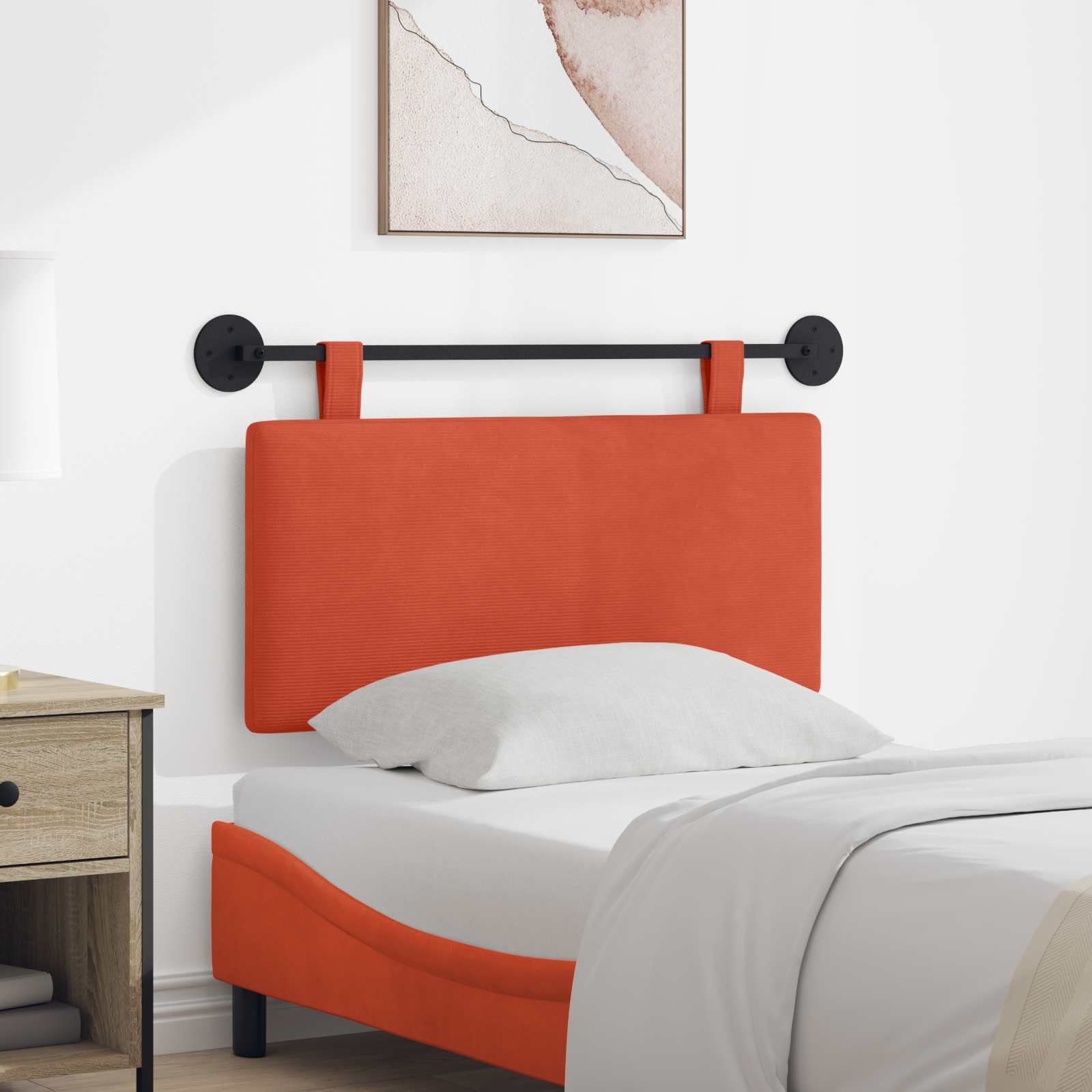 To moderno viseče vzglavje je krasen kos pohištva, ki doda kanček elegance tvoji spalnici. Z elegantno pravokotno obliko je njegova mehka obloga res vabljiva za počitek, zato ni primerno le za spalnice, ampak tudi za jedilnice in predsobe. Ne glede na to, ali služi kot vzglavje za posteljo ali udobno naslonjalo, ta kos ponuja tako stil kot funkcijo, pa še popolnoma se prilega tvojemu domu. Premium tkanina obloga Vzglavje je oblečeno v tkanino, ki vsebuje 80 % poliestra in 20 % najlona, kar mu daje mehak občutek in trpežnost. Takšna sestava nudi luksuzen občutek, kar povečuje udobje in daje urejen videz, primeren za vsak moder interier. Prilagodljiva namestitev Z visečimi pasovi ga enostavno pritrdiš na steno, kar prinaša stabilnost in varnost. Ta način namestitve je super, ker prihrani prostor in prispeva k elegantnemu videzu, kar je praktična izbira za spalnice in družabne prostore. Uporaba močnih, prašno obdelanih kovinskih delov zagotavlja zanesljivost. Funkcionalni oblikovni elementi Vzglavje omogoča odstranljive viseče pasove, ki ti dajejo možnosti za prilagoditev pri namestitvi in vzdrževanju. Tako lahko enostavno spremeniš videz prostora ali prilagodiš komfort, kar ohranja funkcionalnost in stil tudi skozi čas. Večkratna uporaba Idealno za dodajanje elegance in udobja v različnih prostorih doma, to vzglavje brez napora prehaja iz podpora postelji do udobnega naslonjala v dnevnih sobah ali jedilnicah. Njegova vsestranska uporaba izpostavlja njegovo funkcionalnost, kar pomeni, da se dobro ujame povsod, hkrati pa ohranja privlačen videz. Preprosto vzdrževanje Da bo vzglavje dolgo odlično, enostavno obrišeš z vlažno krpo, da odstraniš prah in umazanijo. Zasnova je preprosta, kar omogoča malo dela, kar je super za vsakogar. Ta enostaven postopek vzdrževanja ohranja dober videz vzglavja in zagotavlja njegovo dolgo življenje.
