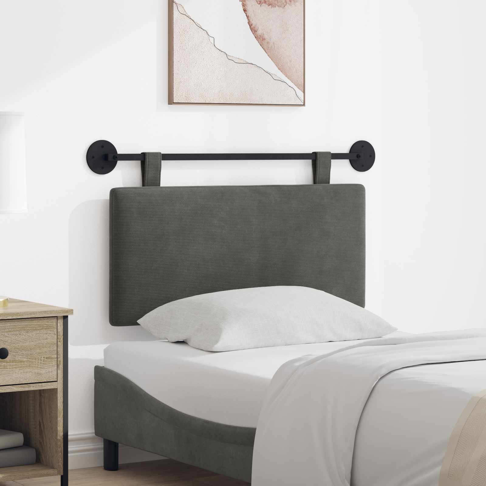 To moderno viseče vzglavje je krasen kos pohištva, ki doda kanček elegance tvoji spalnici. Z elegantno pravokotno obliko je njegova mehka obloga res vabljiva za počitek, zato ni primerno le za spalnice, ampak tudi za jedilnice in predsobe. Ne glede na to, ali služi kot vzglavje za posteljo ali udobno naslonjalo, ta kos ponuja tako stil kot funkcijo, pa še popolnoma se prilega tvojemu domu. Premium tkanina obloga Vzglavje je oblečeno v tkanino, ki vsebuje 80 % poliestra in 20 % najlona, kar mu daje mehak občutek in trpežnost. Takšna sestava nudi luksuzen občutek, kar povečuje udobje in daje urejen videz, primeren za vsak moder interier. Prilagodljiva namestitev Z visečimi pasovi ga enostavno pritrdiš na steno, kar prinaša stabilnost in varnost. Ta način namestitve je super, ker prihrani prostor in prispeva k elegantnemu videzu, kar je praktična izbira za spalnice in družabne prostore. Uporaba močnih, prašno obdelanih kovinskih delov zagotavlja zanesljivost. Funkcionalni oblikovni elementi Vzglavje omogoča odstranljive viseče pasove, ki ti dajejo možnosti za prilagoditev pri namestitvi in vzdrževanju. Tako lahko enostavno spremeniš videz prostora ali prilagodiš komfort, kar ohranja funkcionalnost in stil tudi skozi čas. Večkratna uporaba Idealno za dodajanje elegance in udobja v različnih prostorih doma, to vzglavje brez napora prehaja iz podpora postelji do udobnega naslonjala v dnevnih sobah ali jedilnicah. Njegova vsestranska uporaba izpostavlja njegovo funkcionalnost, kar pomeni, da se dobro ujame povsod, hkrati pa ohranja privlačen videz. Preprosto vzdrževanje Da bo vzglavje dolgo odlično, enostavno obrišeš z vlažno krpo, da odstraniš prah in umazanijo. Zasnova je preprosta, kar omogoča malo dela, kar je super za vsakogar. Ta enostaven postopek vzdrževanja ohranja dober videz vzglavja in zagotavlja njegovo dolgo življenje.