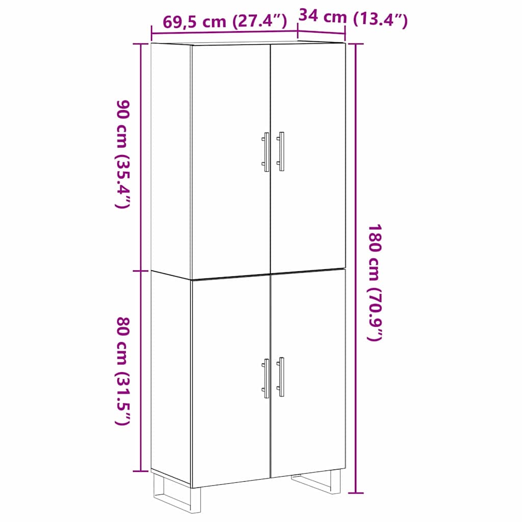 - 1 x Vrh za visok omarico: 69,5 x 34 x 90 cm (D x Š x V)
