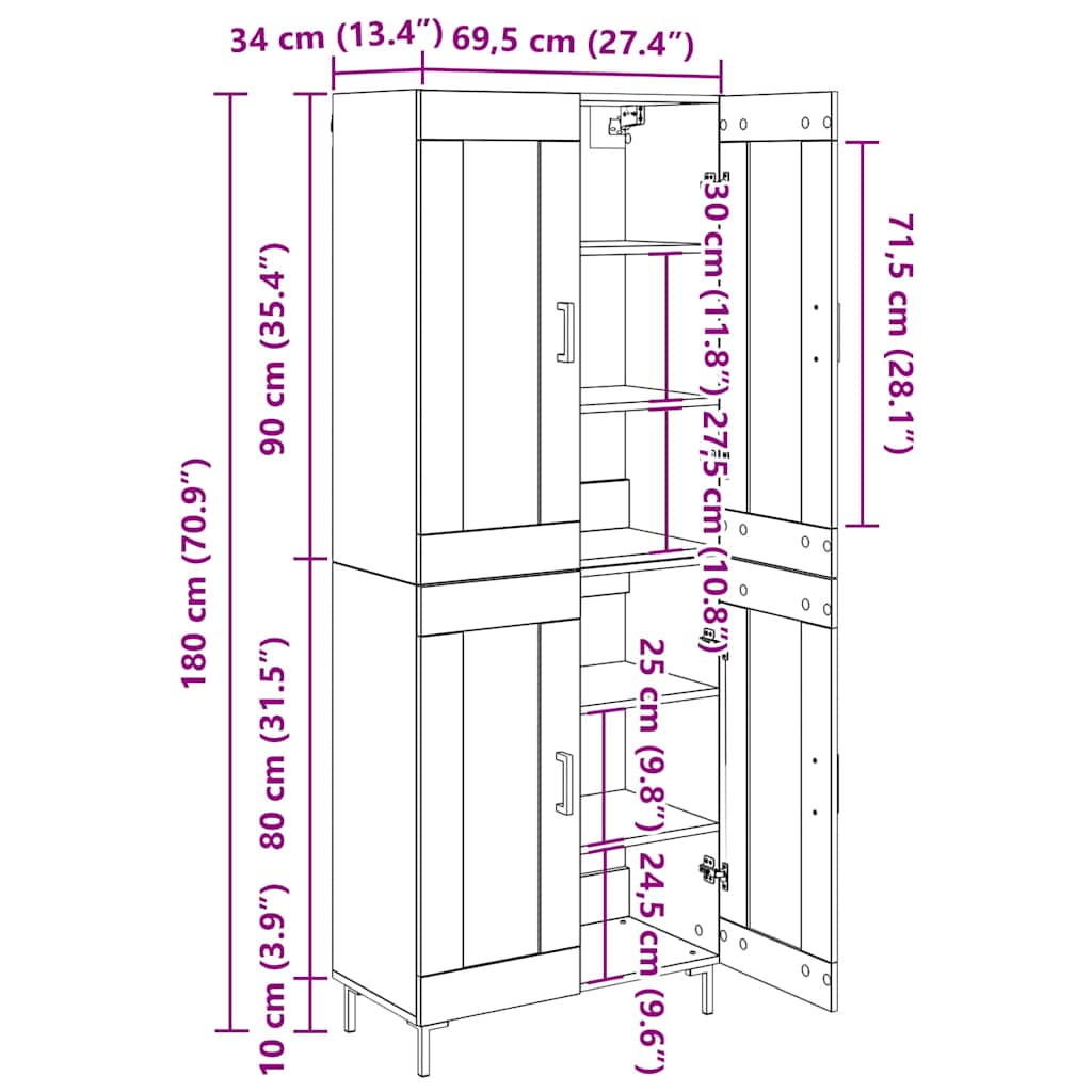 - 1 x vrh za visoko omaro: 69,5 x 34 x 90 cm (DxŠxV)
