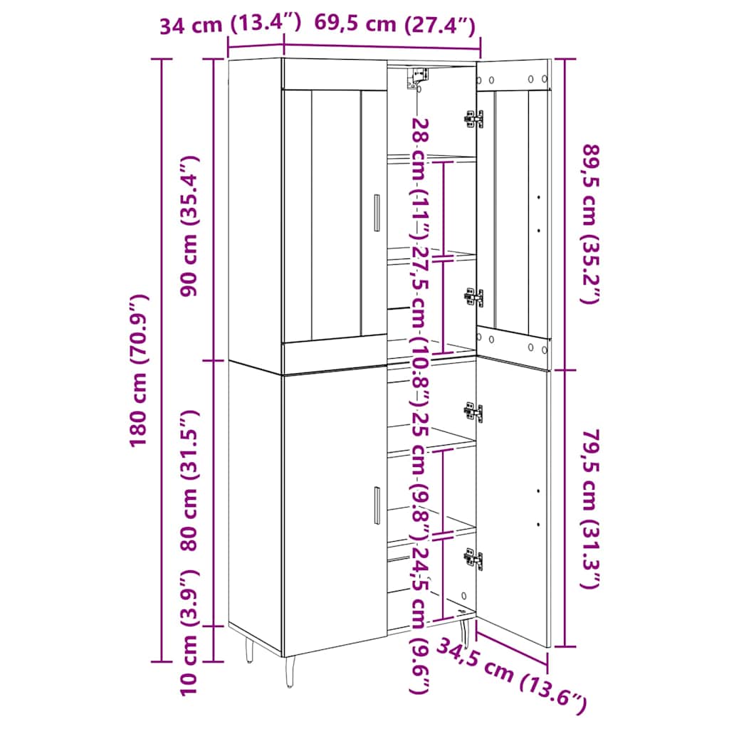 - 1 x Vrh za visok omarico: 69,5 x 34 x 90 cm (D x Š x V)