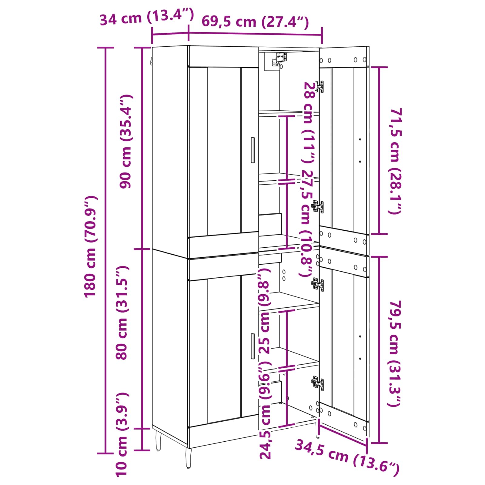 - 1 x Vrh za visok omarico: 69,5 x 34 x 90 cm (D x Š x V)