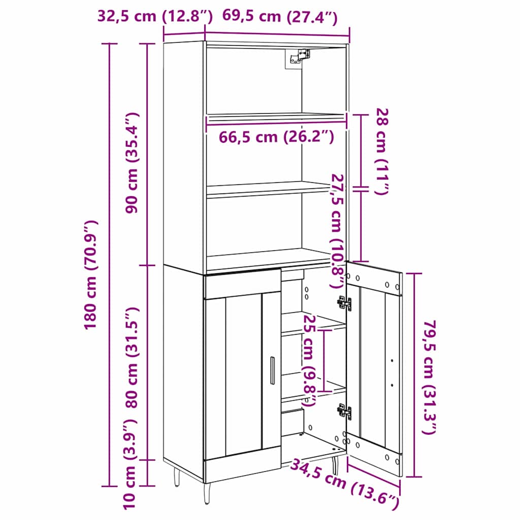 - 1 x zgornji del za visoko omaro: 69,5 x 34 x 90 cm (D׊×V)