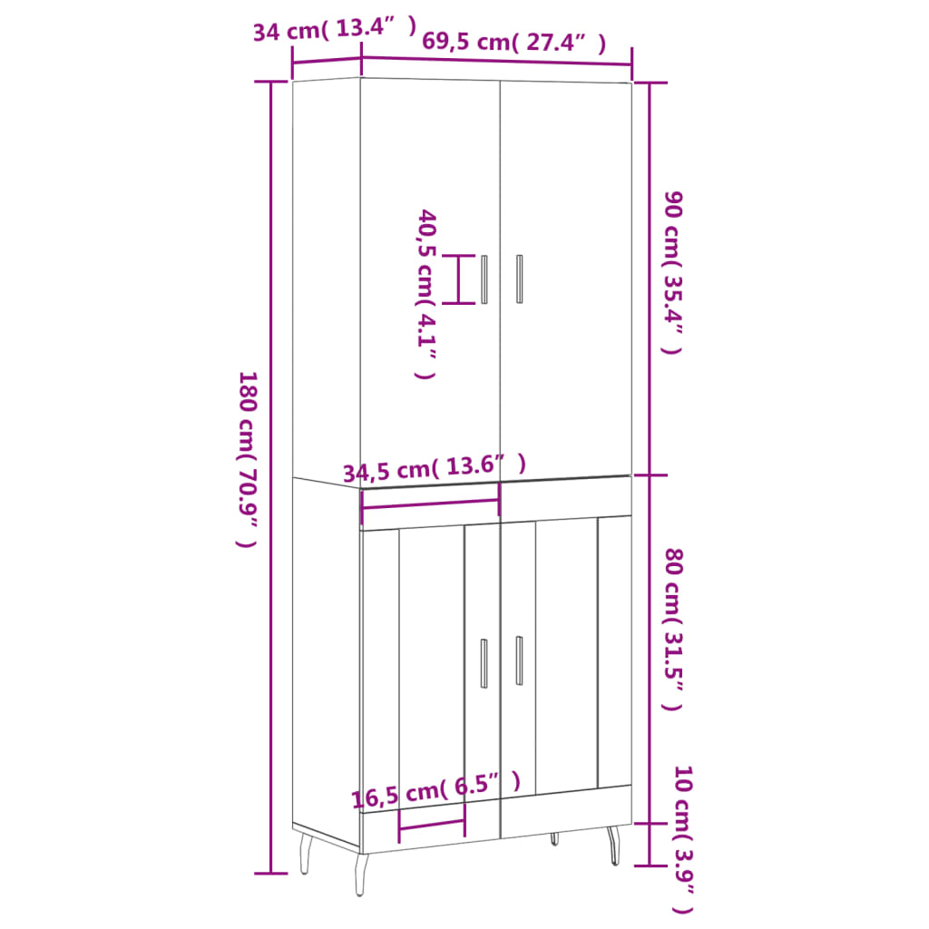 - Mere zgornje plošče: 69,5 x 34 x 90 cm (Š x G x V)