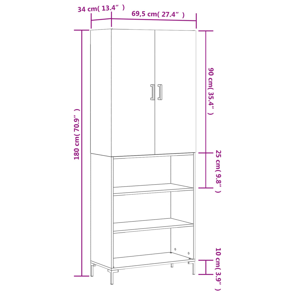 Visoka komoda siva sonoma 69,5x34x180 cm inženirski les