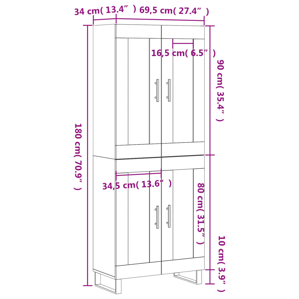 - Skupne dimenzije: 69,5 x 34 x 180 cm (Š x G x V)