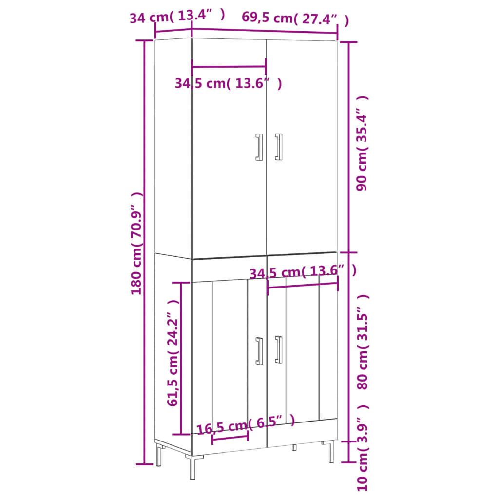 - Skupne dimenzije: 69,5 x 34 x 180 cm (Š x G x V)