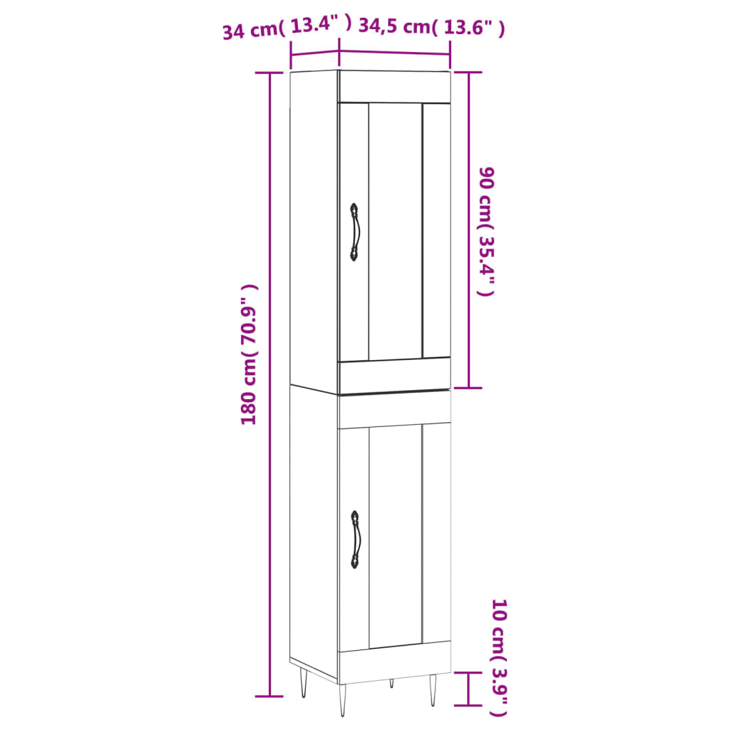 - Mere zgornje enote visoke omare: 34,5 x 34 x 90 cm (Š x G x V)